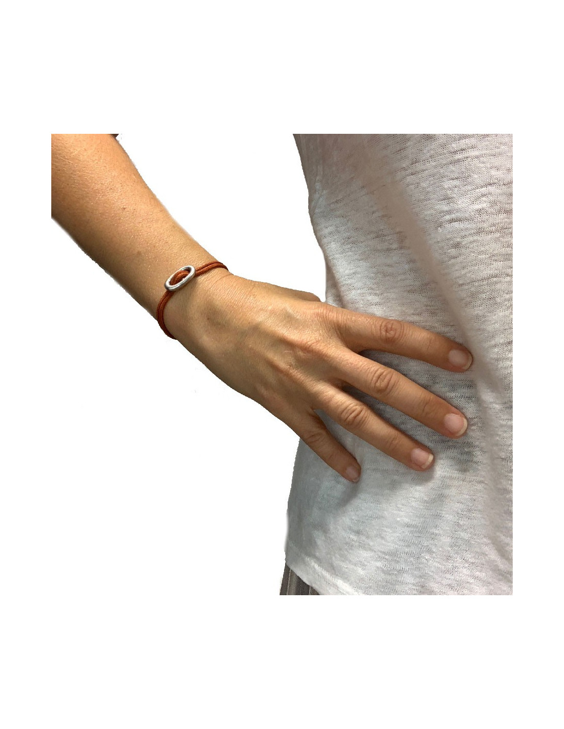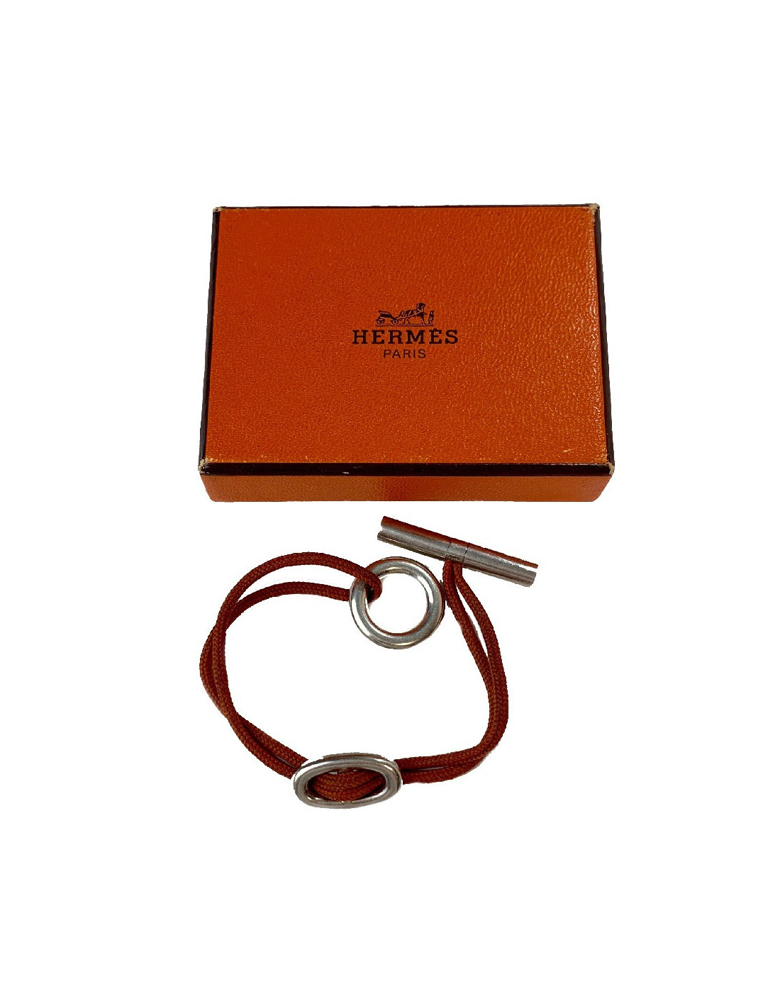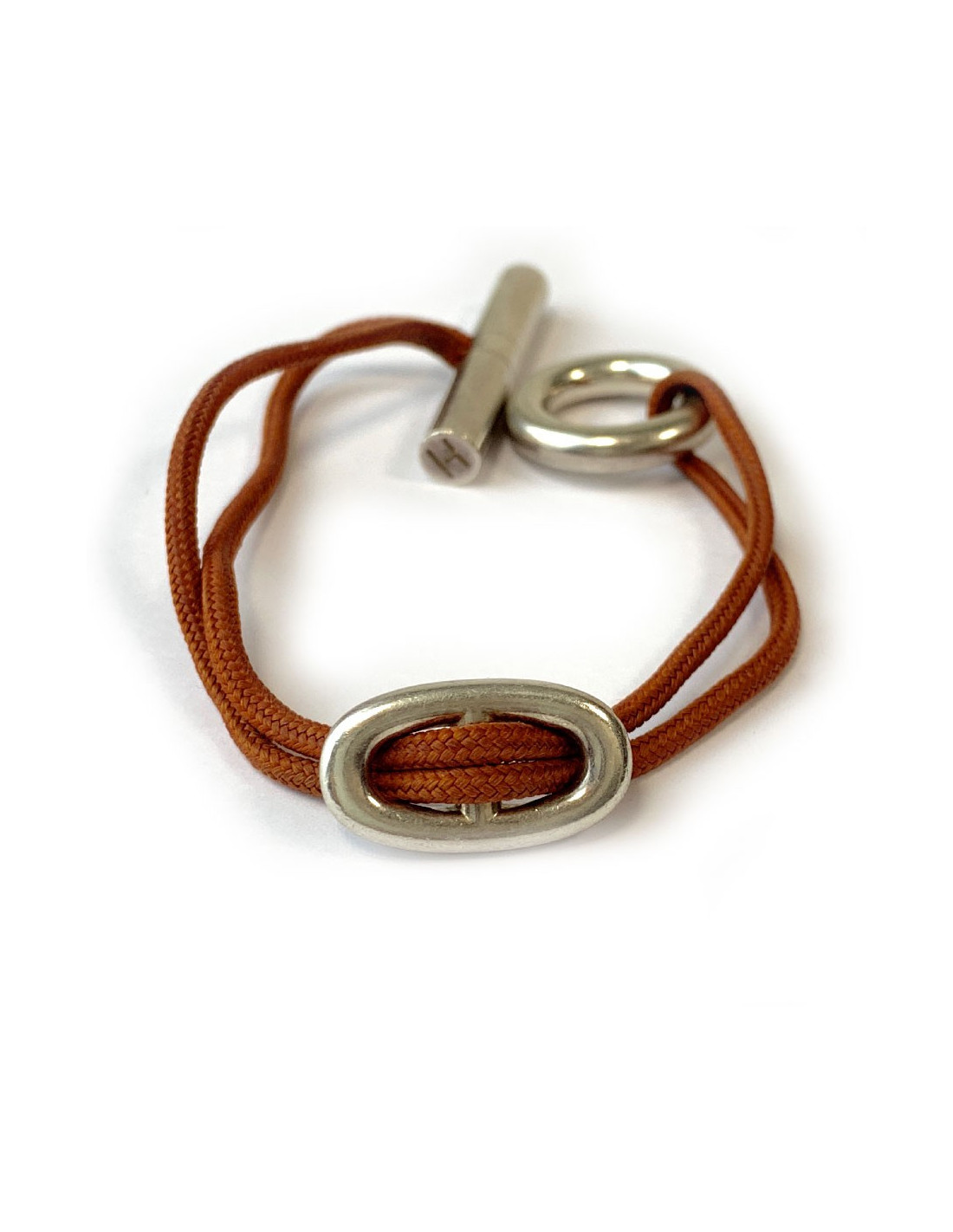 Bracelet Hermès Skipper cordon couleur brique et bijouterie en argent