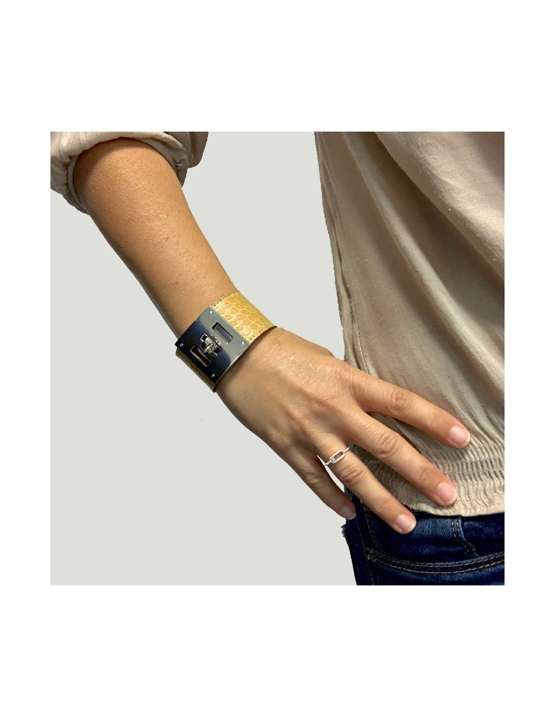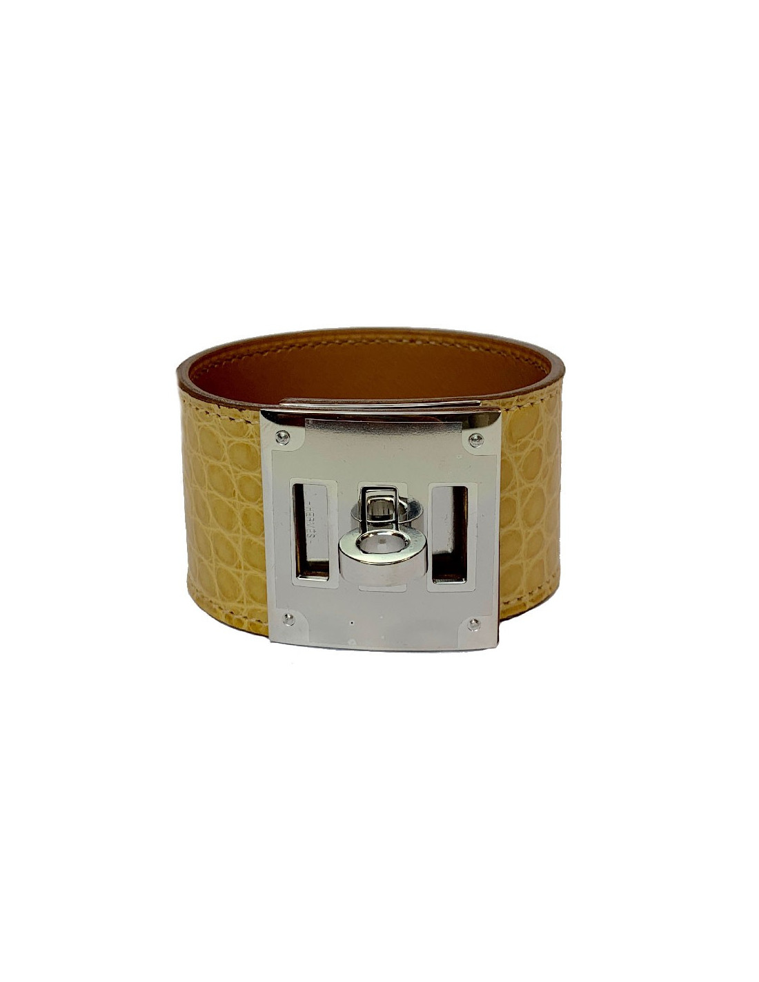Manchette Kelly dog  HERMES alligator mat jaune mais