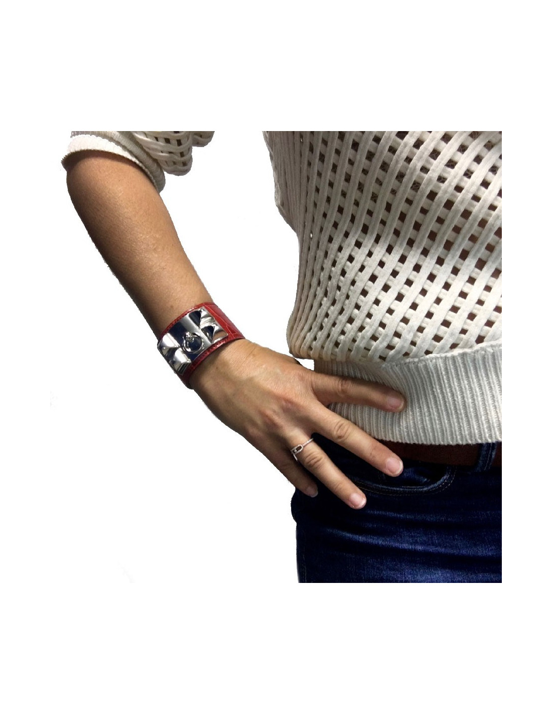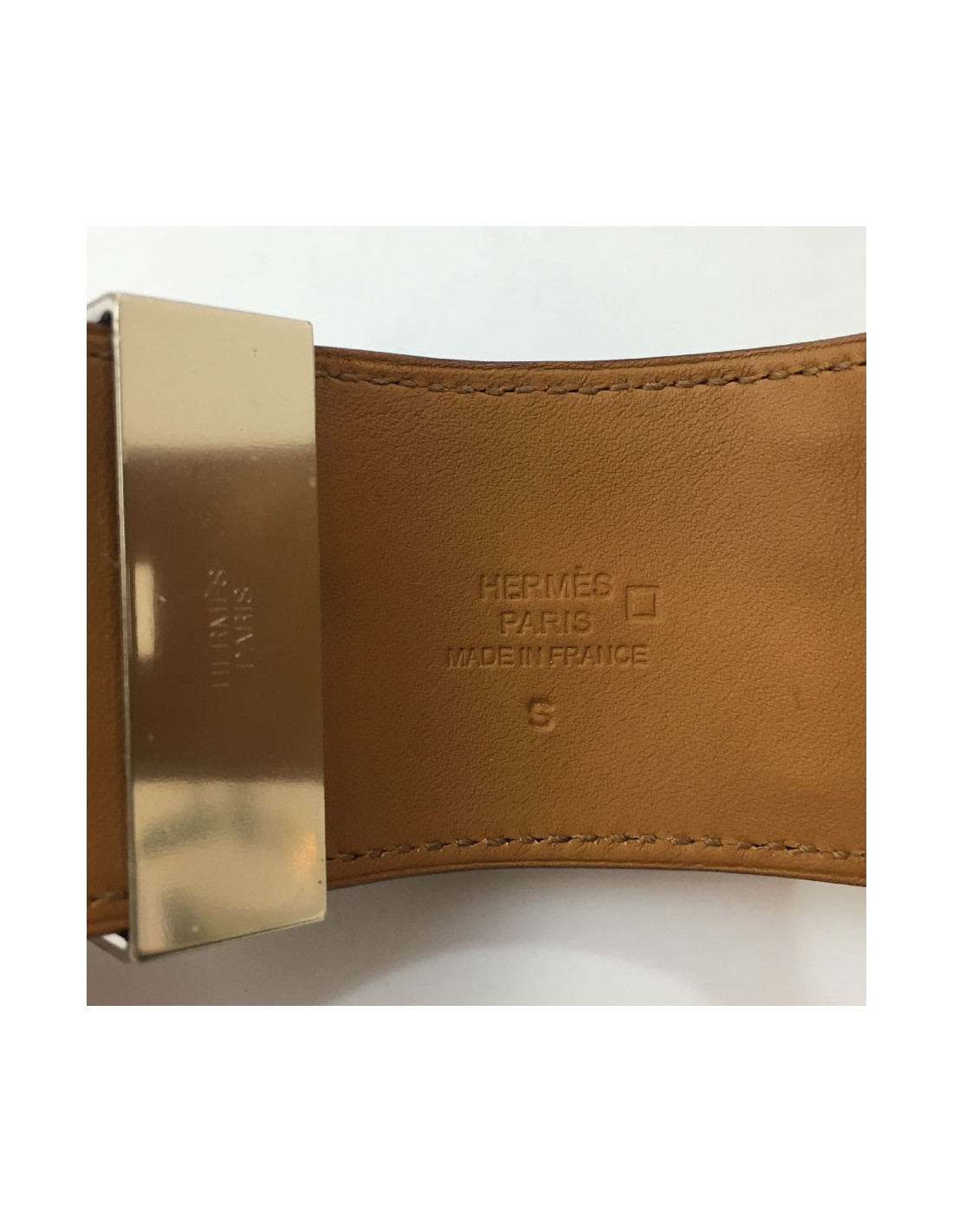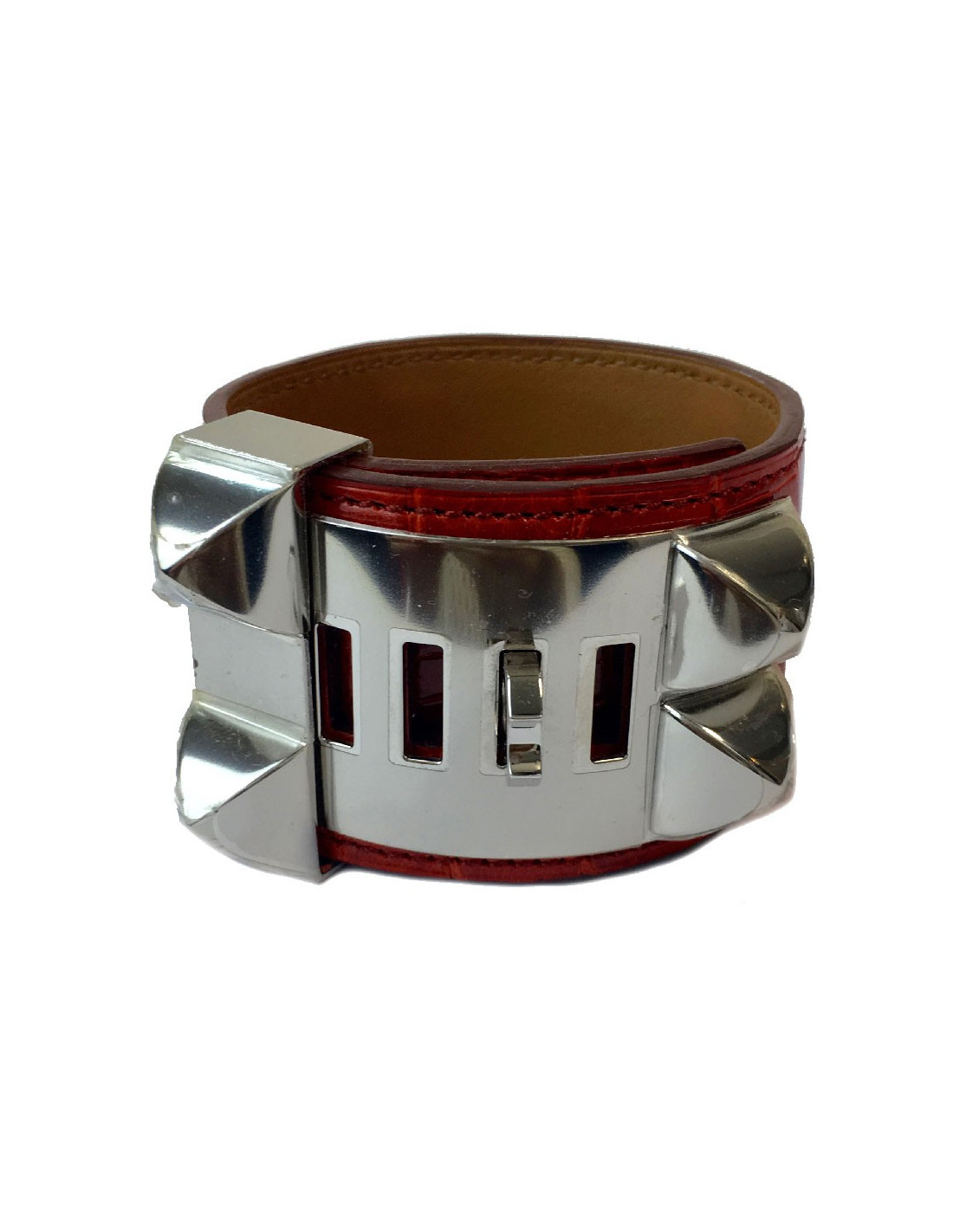 Manchette Médor HERMES en crocodile orange et bijouterie dorée