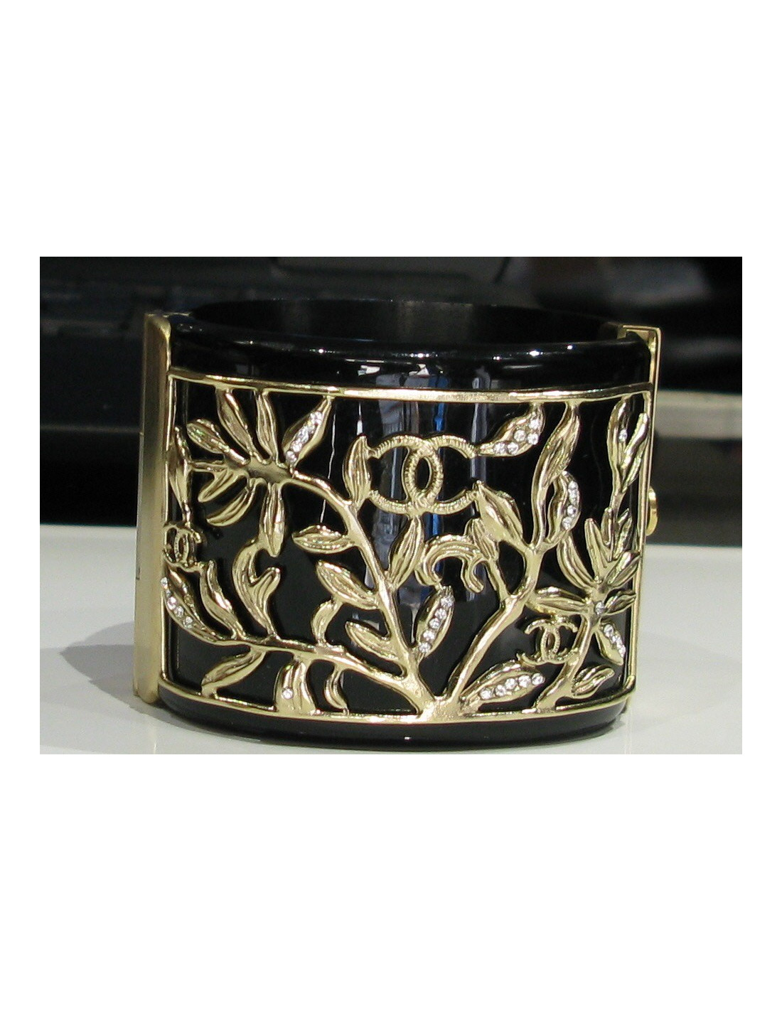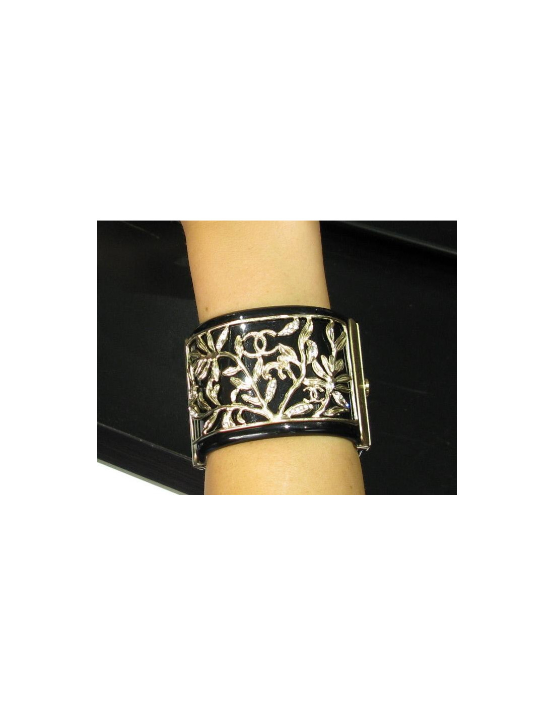 Manchette CHANEL noire "branchages strassés"