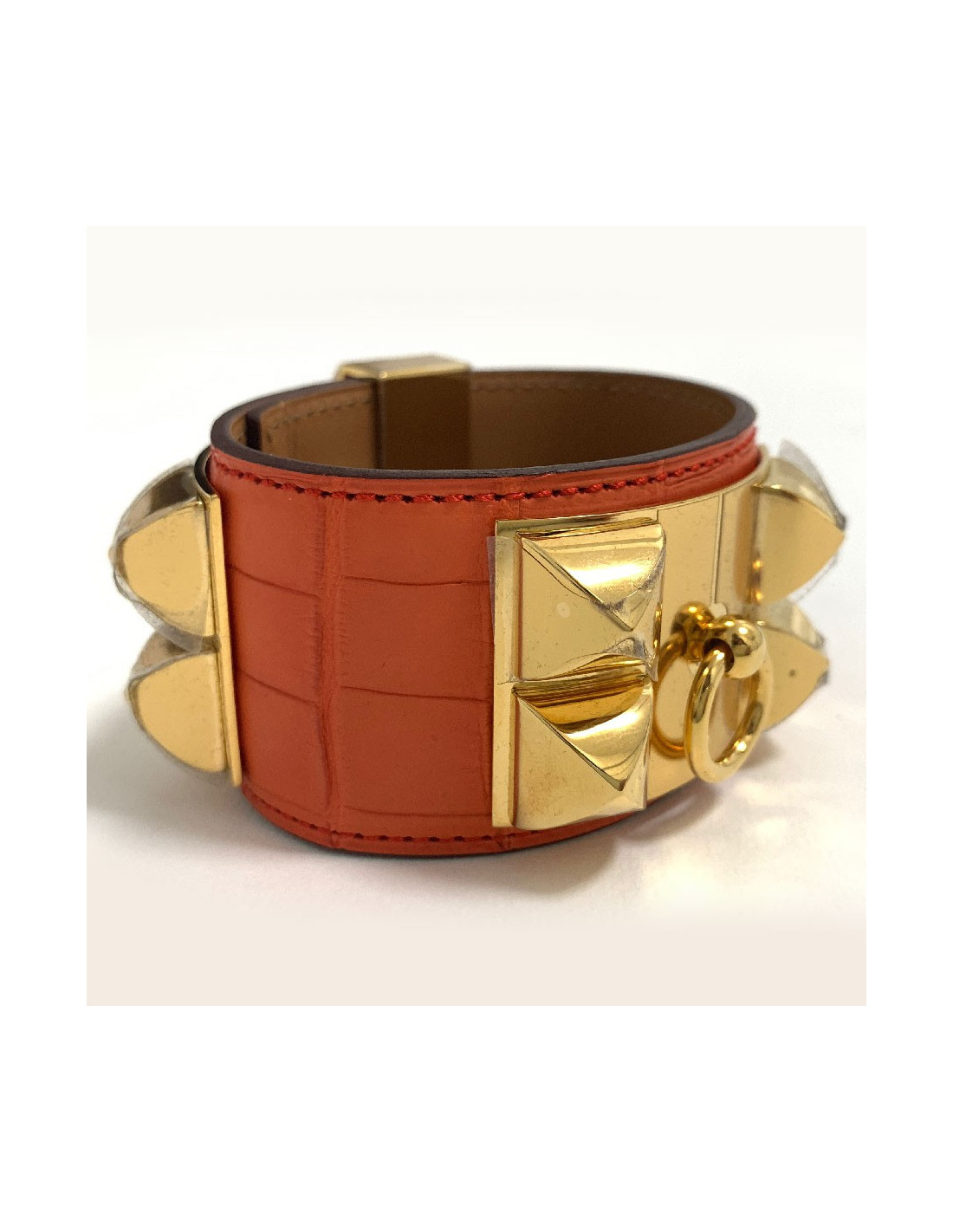 Description du bracelet Collier de Chien HERMES alligator orange mat
