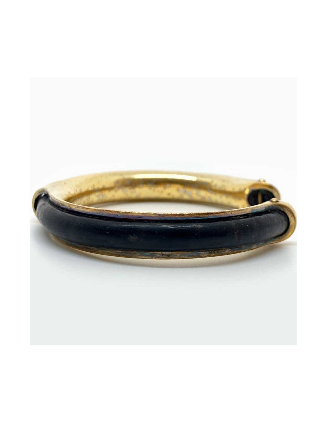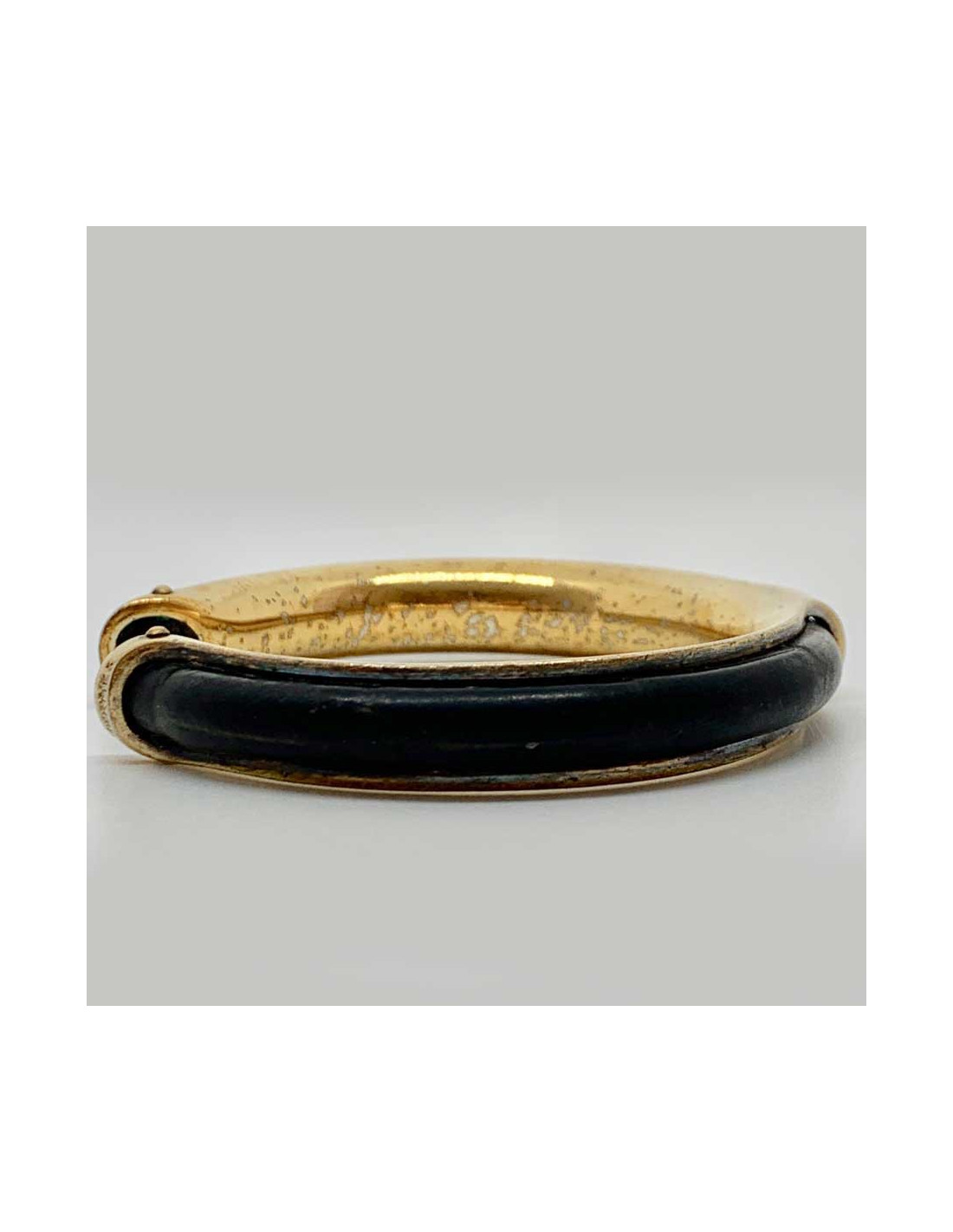 Bracelet vintage HERMES cuir noir laiton doré