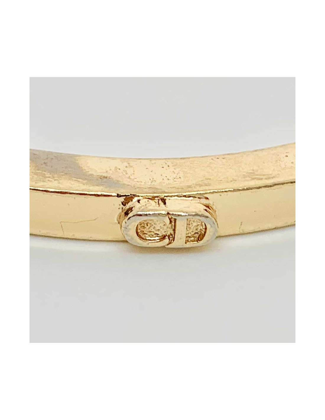 A porter seul ou cumulé à d'autres bracelets. Bracelet rigide en métal doré de la Maison CHRISTIAN DIOR. Les initiales CD se situent sur le pourtour, en relief. Bijou vintage datant de la période Gianfranco Ferré (années 80).