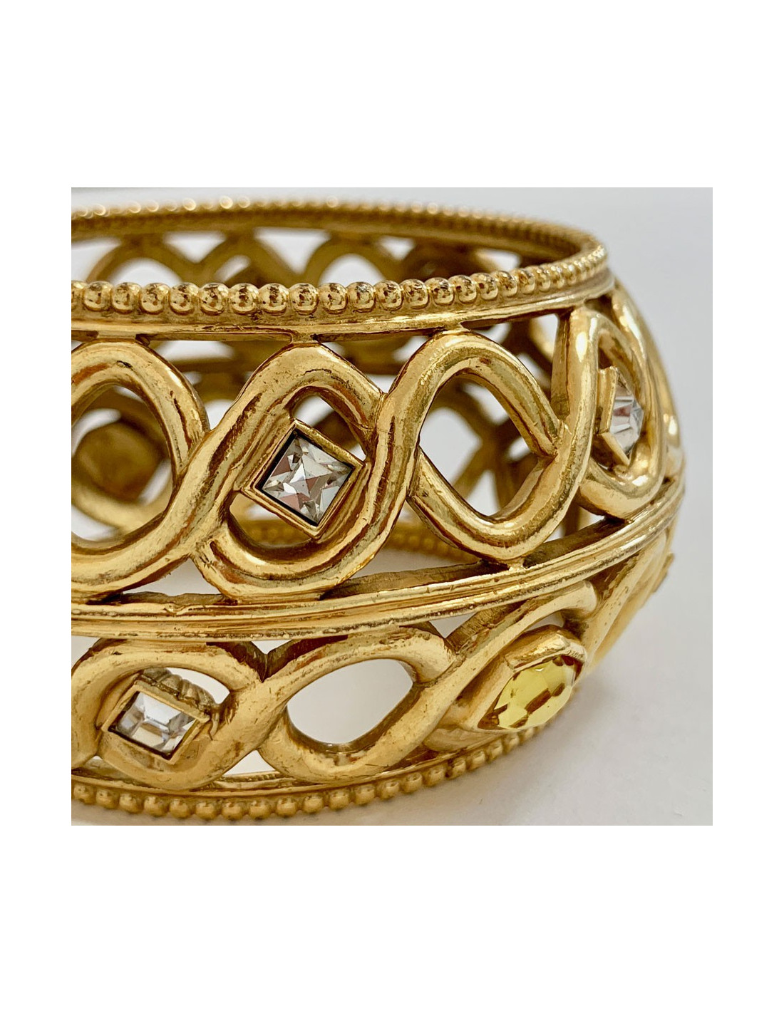 Manchette dorée et strass occasion attribué à Gianfranco Ferré pour DIOR