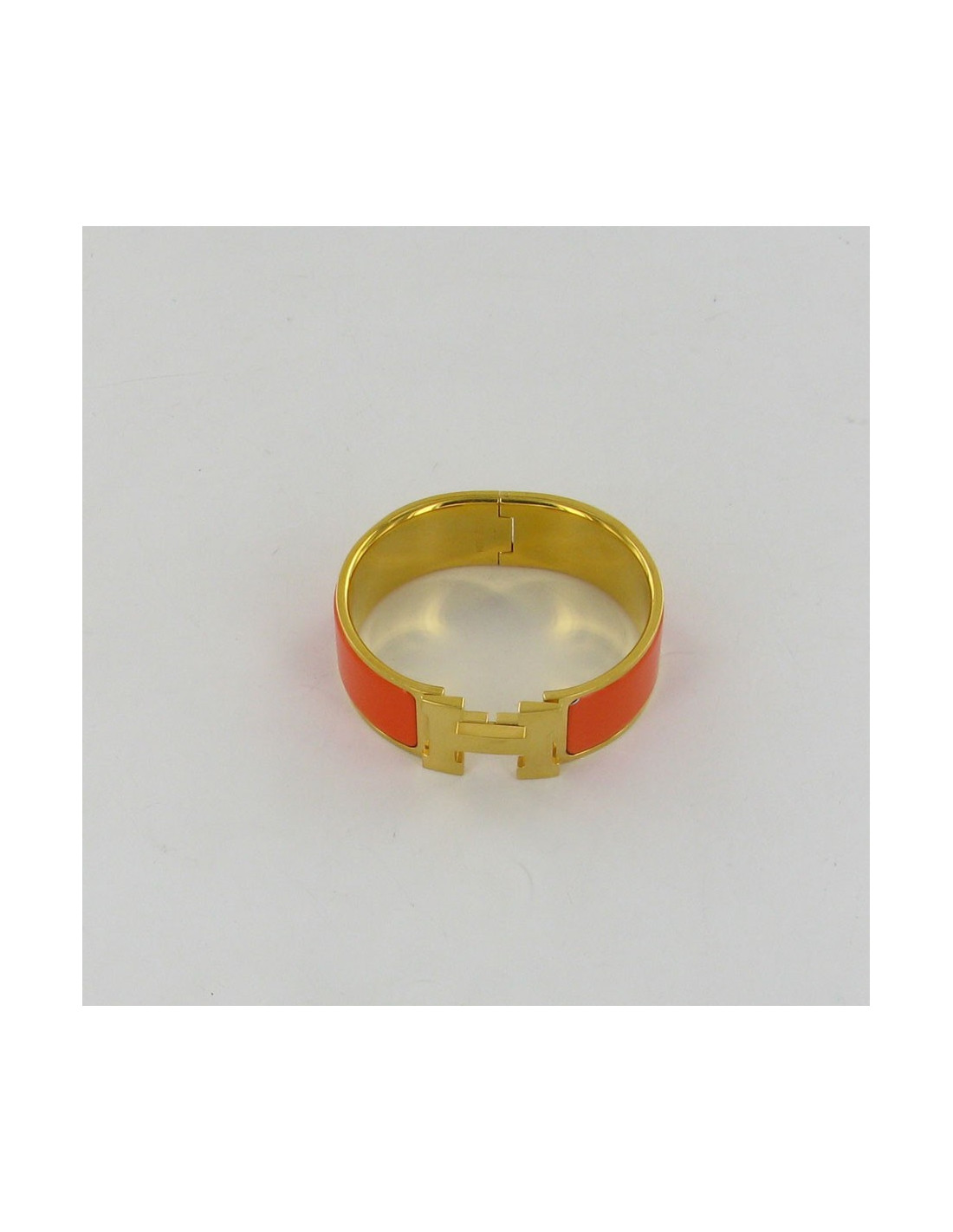 Ce bracelet Constance, intemporel de la Maison HERMES, est en métal émaillé orange H et ferrures plaquées or .