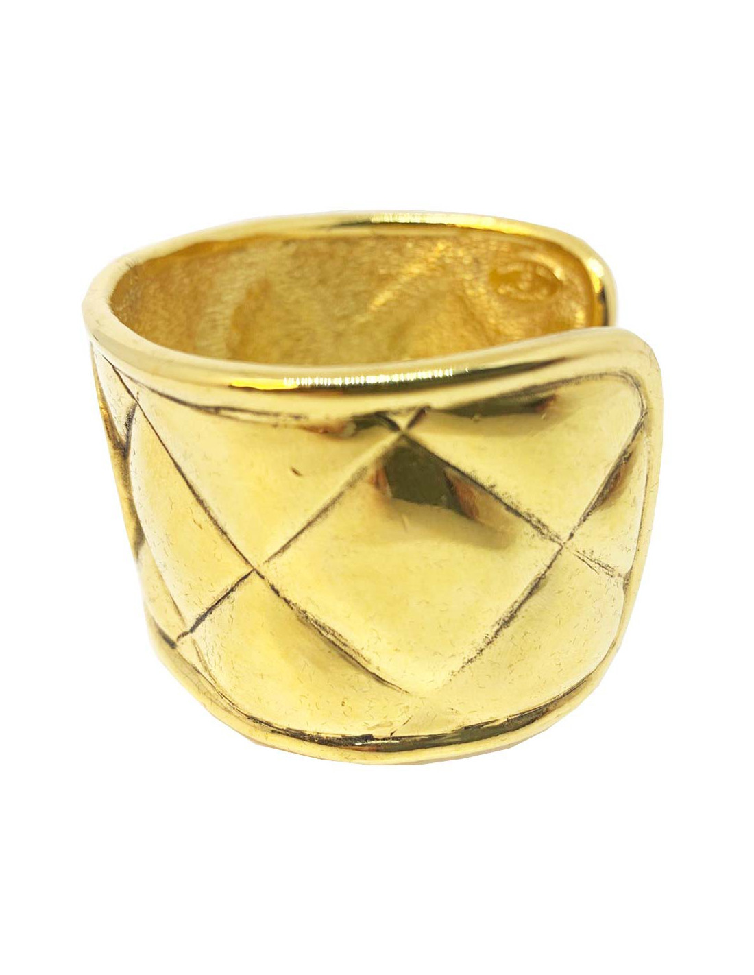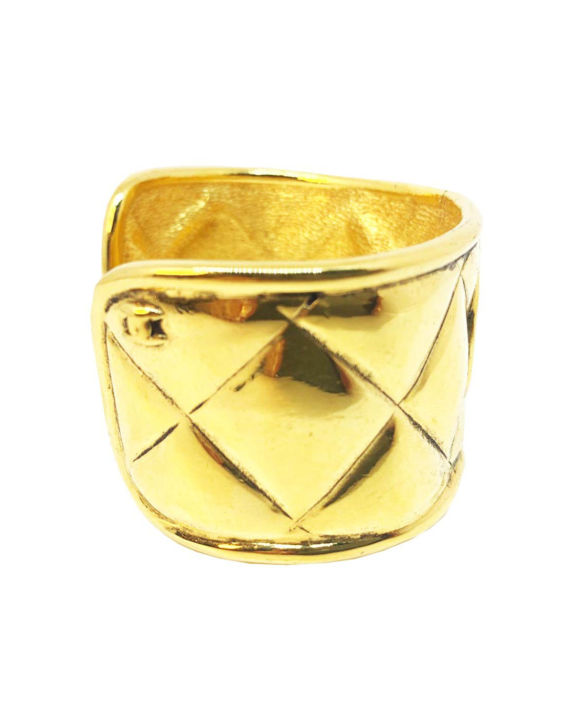 Iconique, superbe manchette de la maison CHANEL des années 90, en métal doré effet matelassé. En son centre, un cercle avec l'inscription CHANEL 31 RUE CAMBON PARIS.