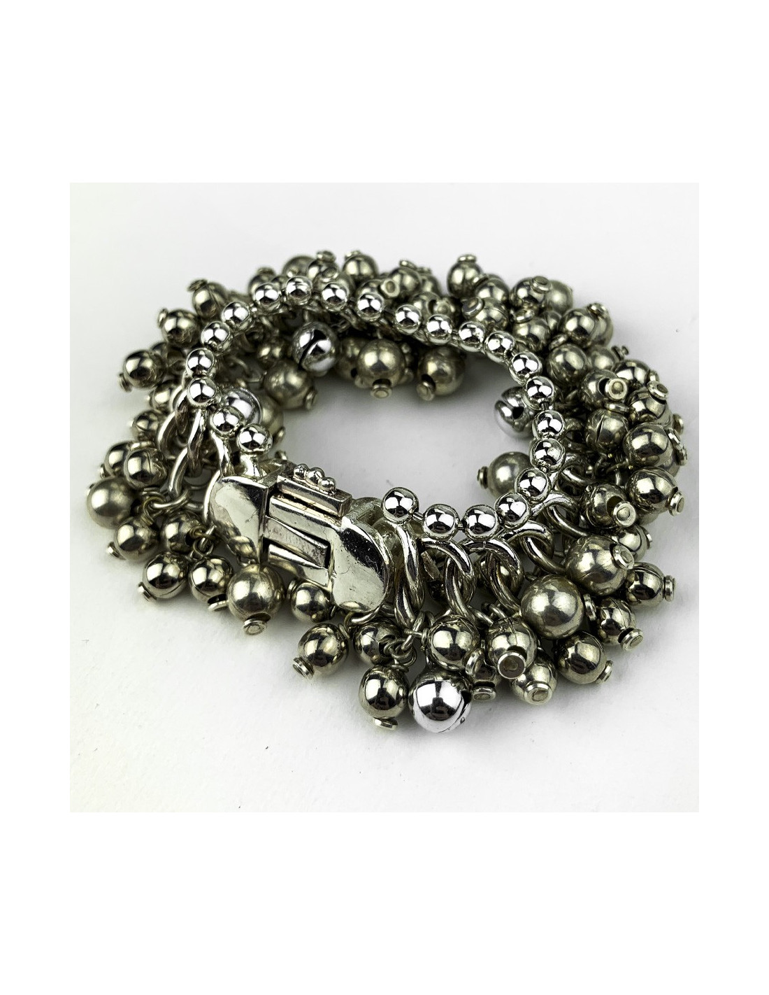 Le bracelet est un bracelet DIOR. Il se compose de grelots argentés en nombre et sur toute sa longueur. Pour un poignet sonore!