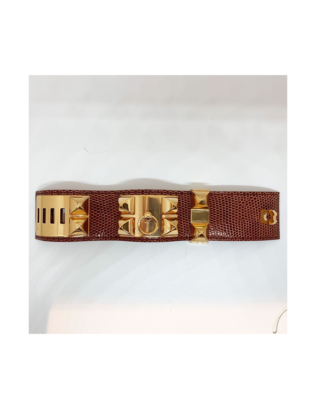 Manchette collier de chien HERMES lezard lisse etrusque