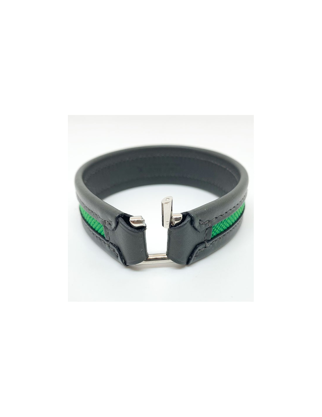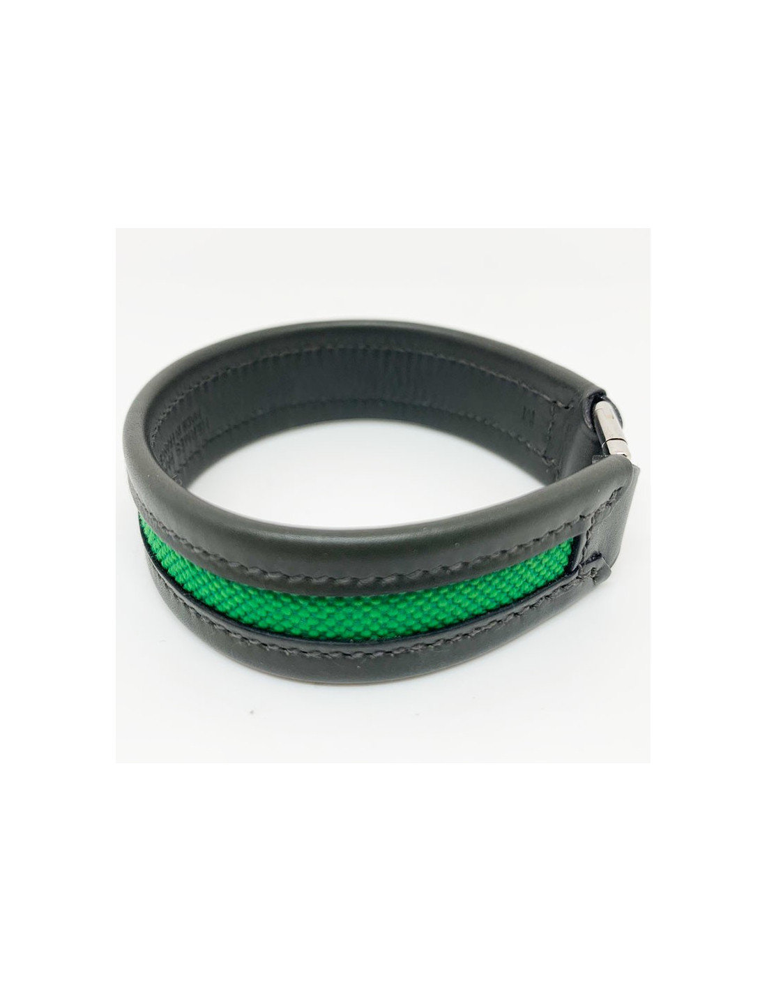 Bracelet vert HERMES cuir de veau, toile et laiton