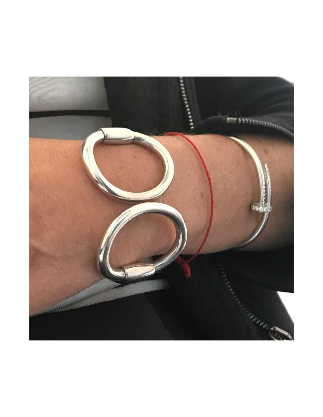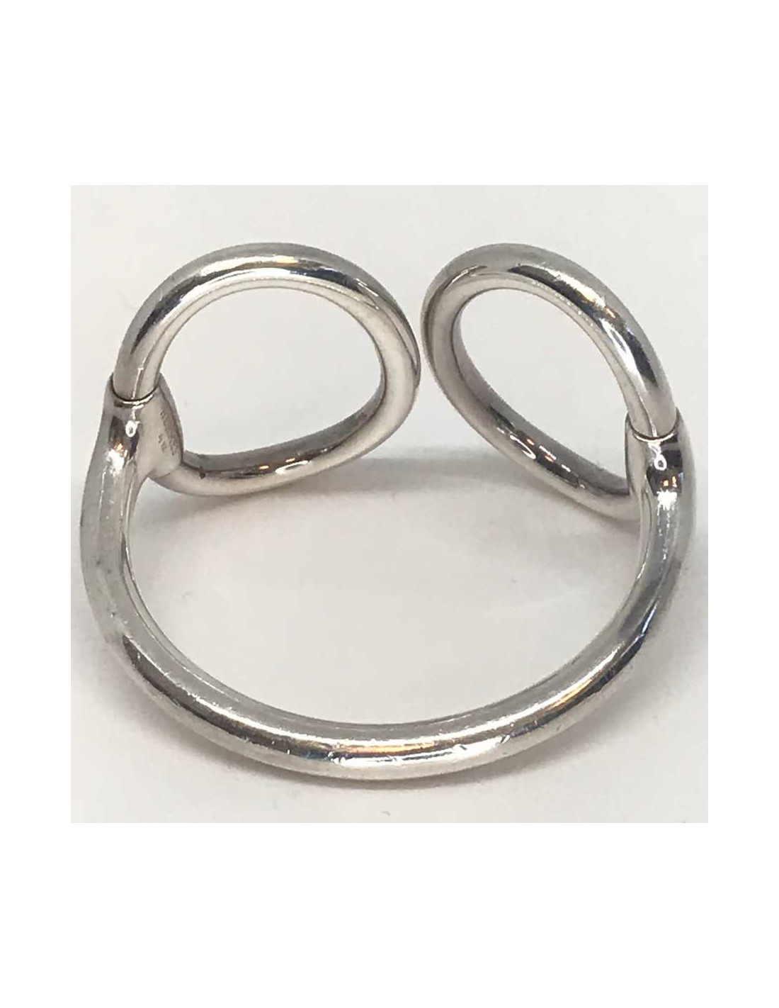 Le bracelet HERMES Nausicaa est en argent massif, comme indiqué par son poinçon. Il est en bon état mais comporte des micro-rayures. Son tour de poignet intérieur est de 16 cm, avec un diamètre de 6 cm. D'une hauteur de 4.5 cm, le bracelet pèse 75 grammes.