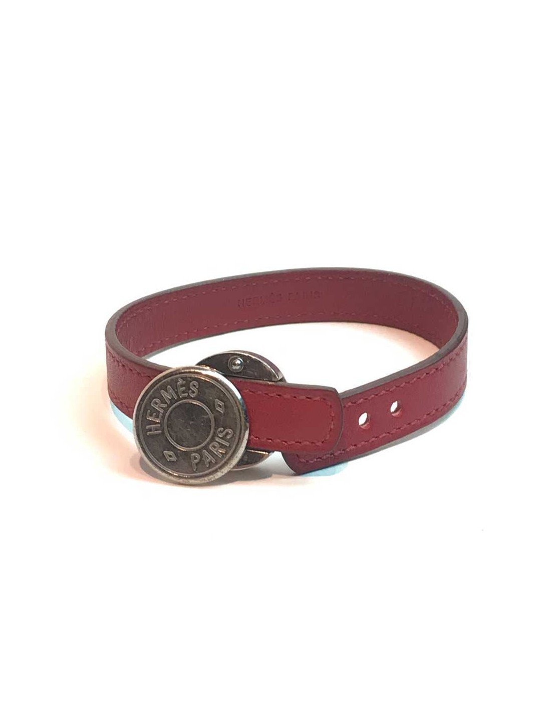 Bracelet HERMES clou de selle cuir cerise
