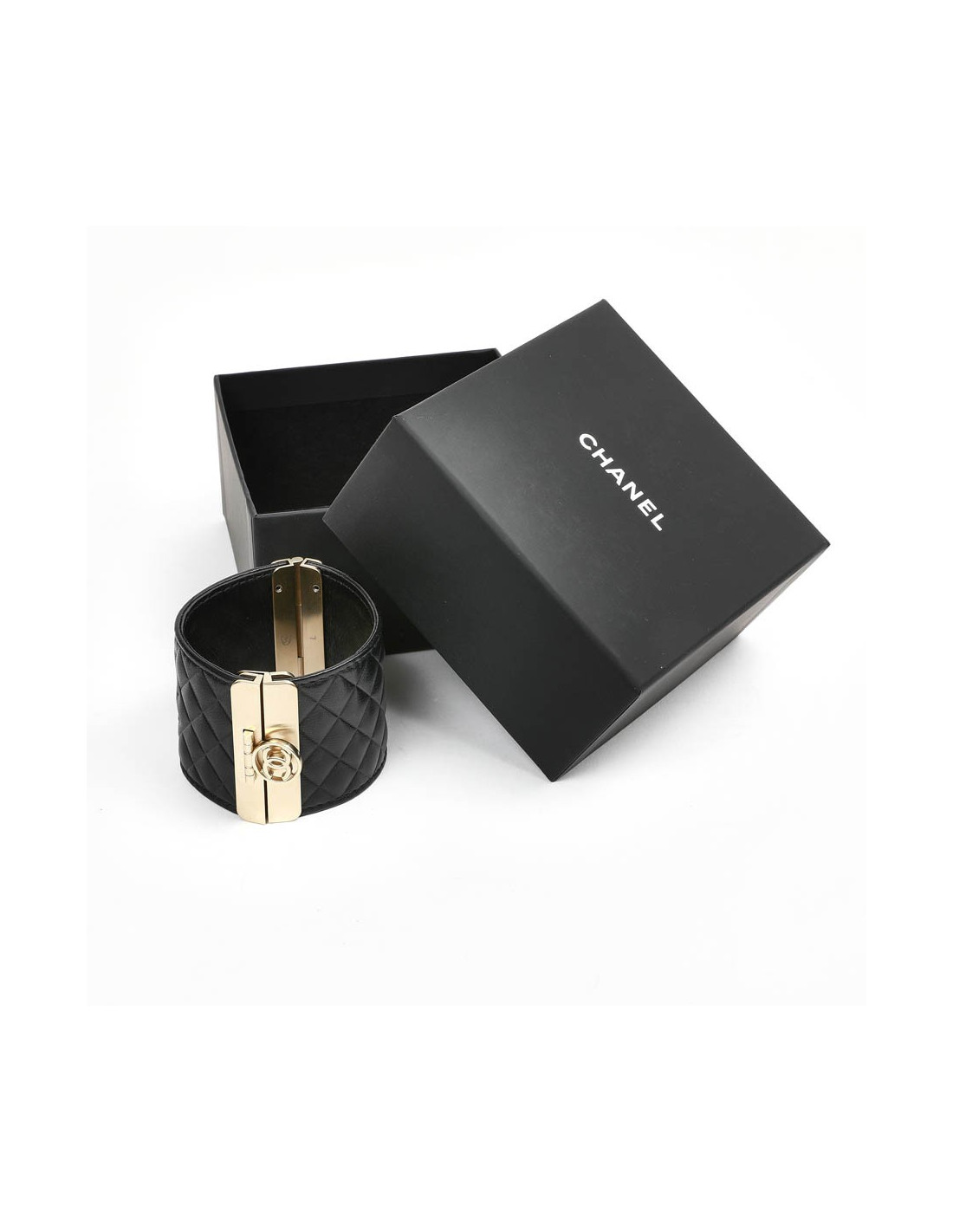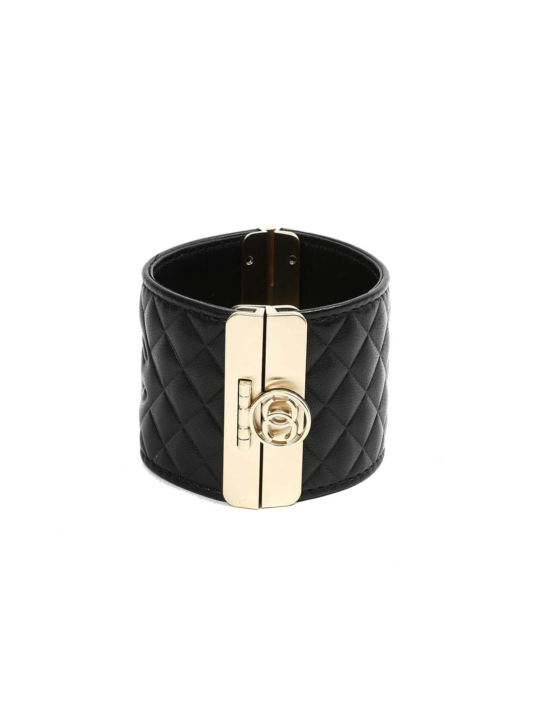 Manchette matelassée CHANEL noir en cuir