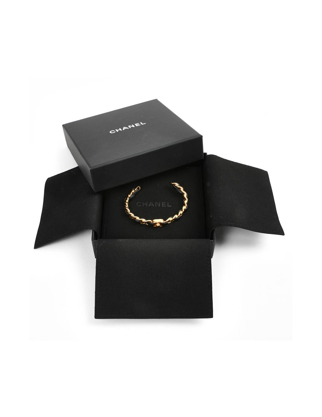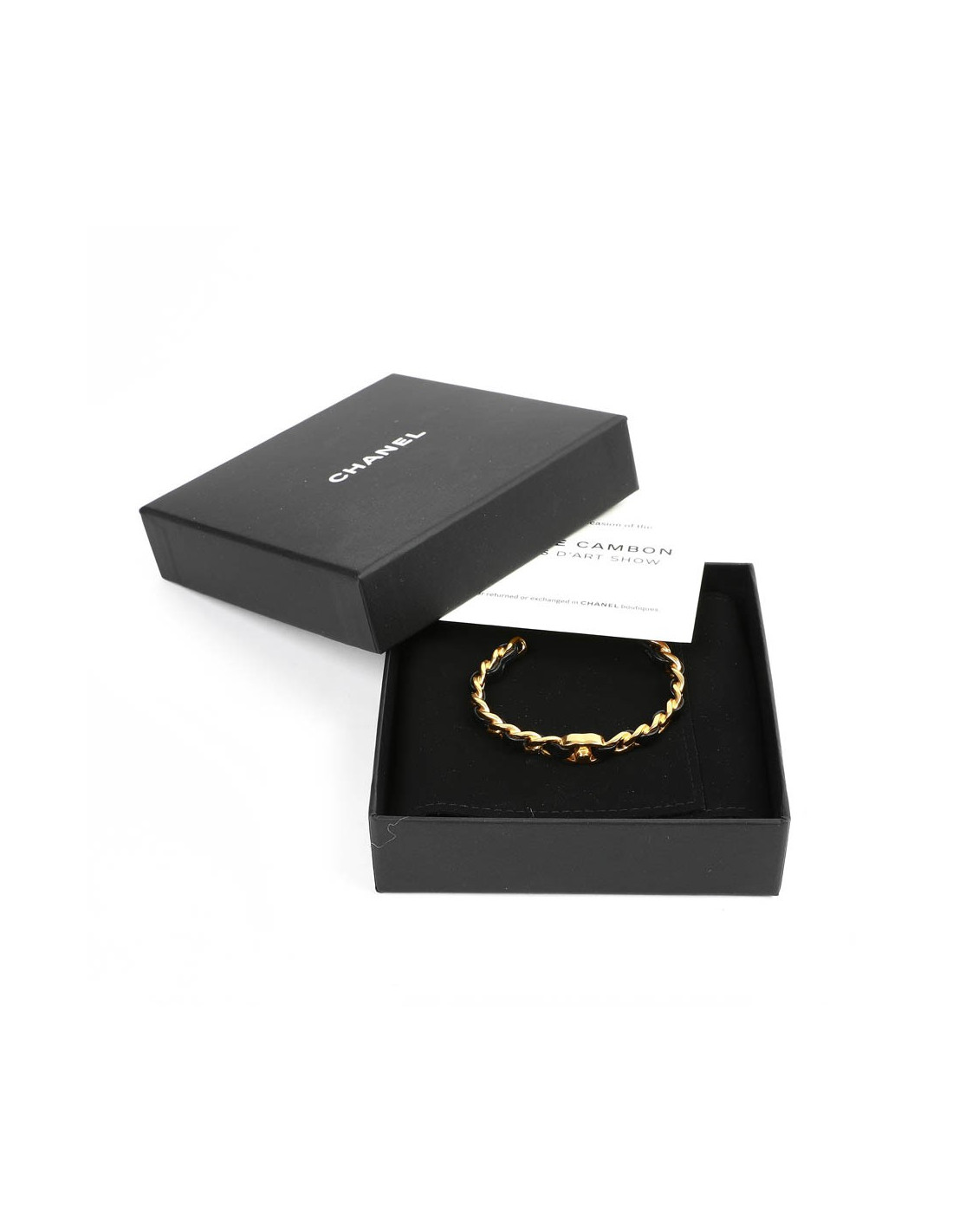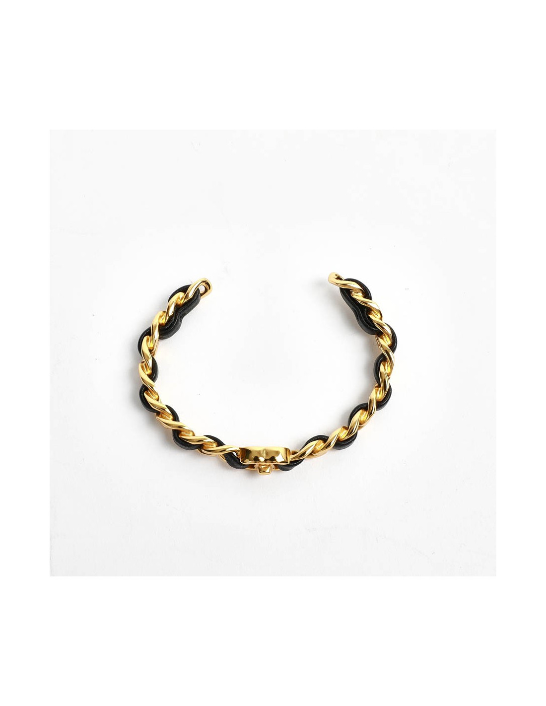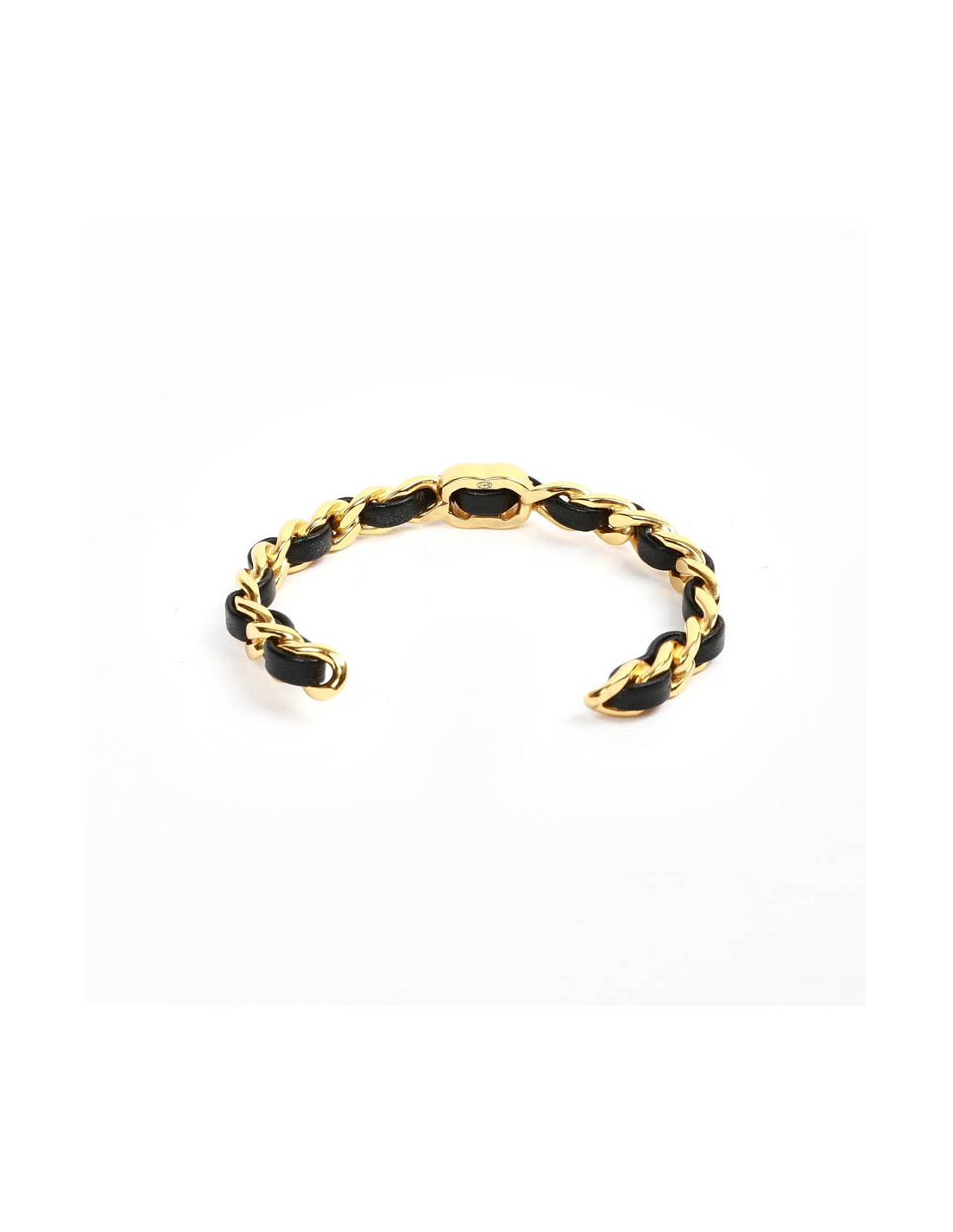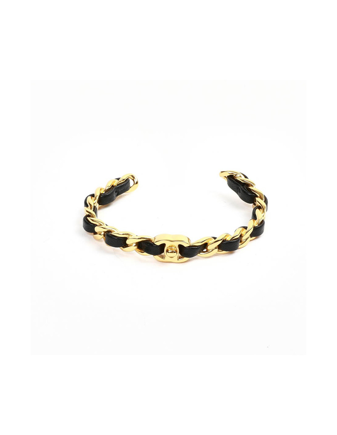 bracelet CHANEL métal doré entrelacé de cuir noir