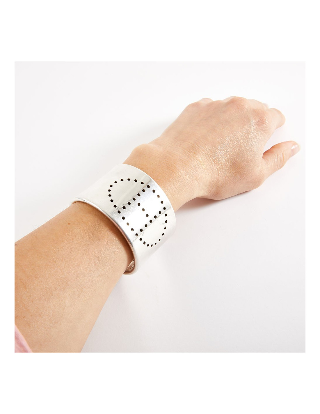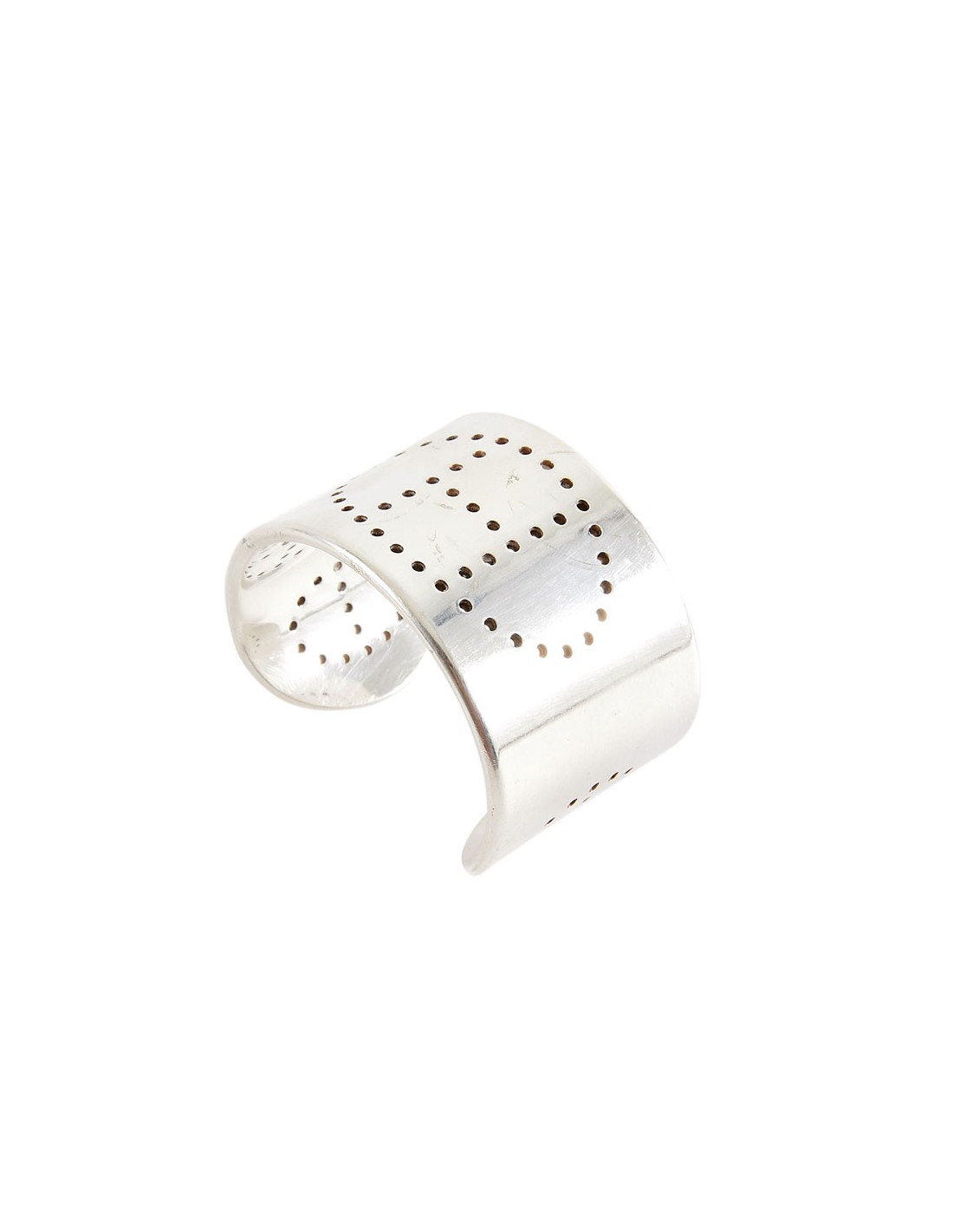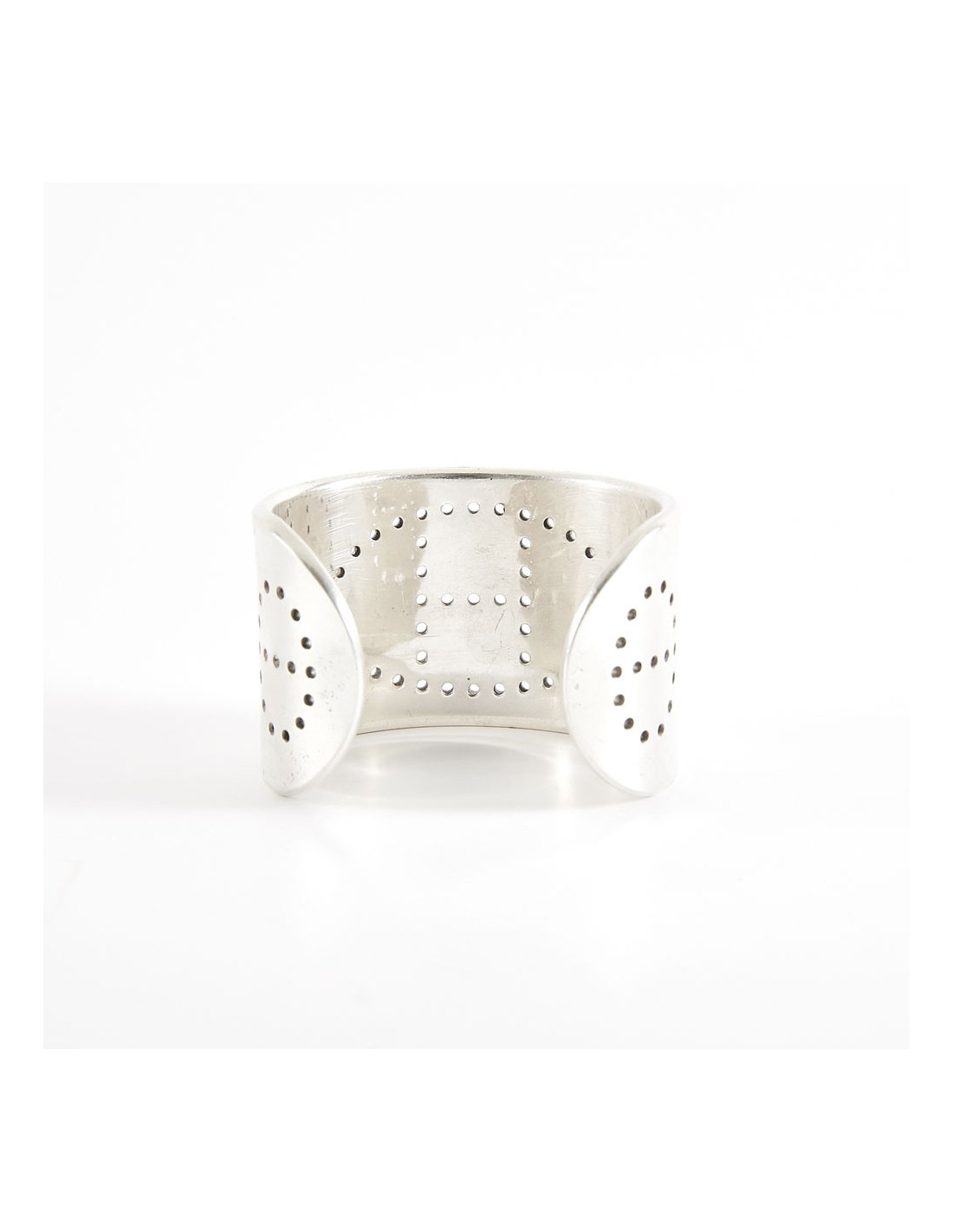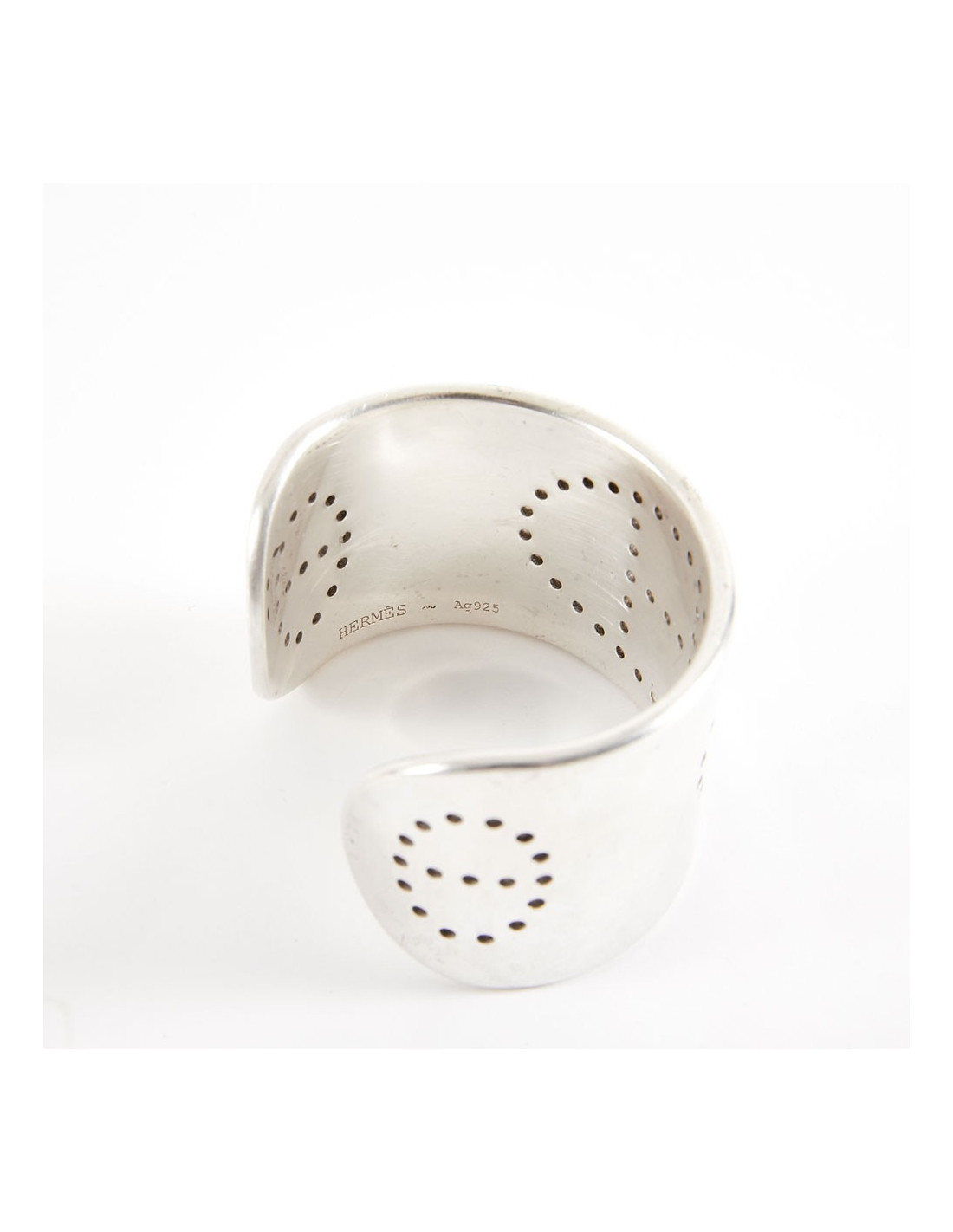 Ce bracelet est de fabrication française. Il est gravé : HERMES Ag 925. les micro rayures peuvent disparaître après un léger polissage. Dimensions : 17 cm tour complet du bracelet, hauteur 4 cm, épaisseur 2 mm.