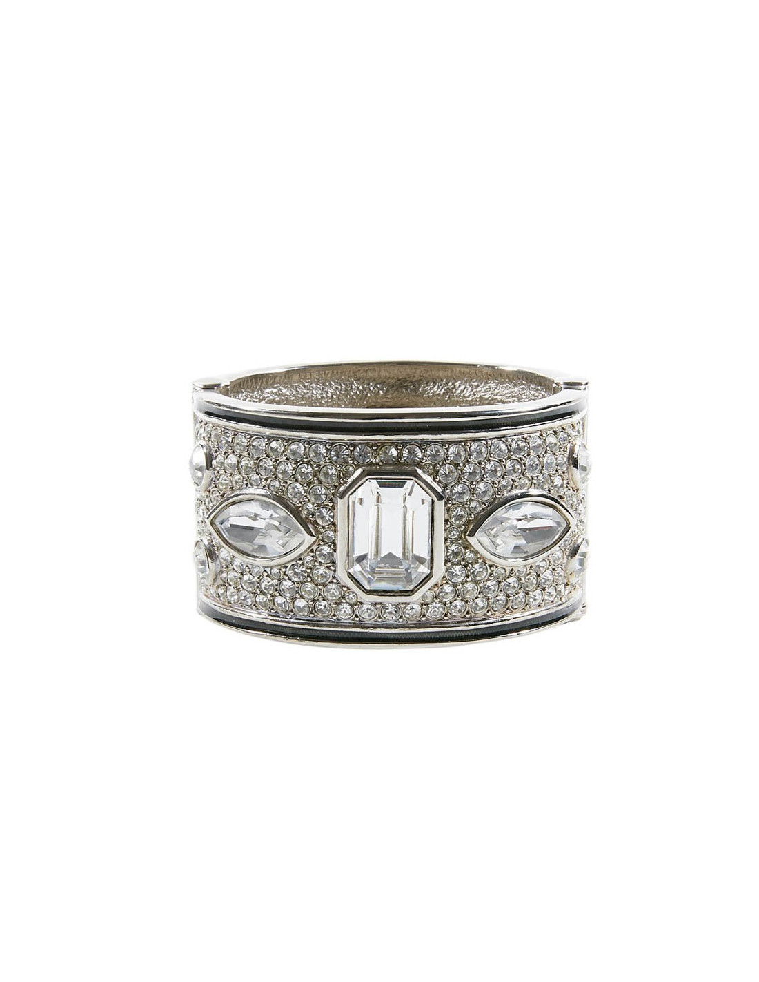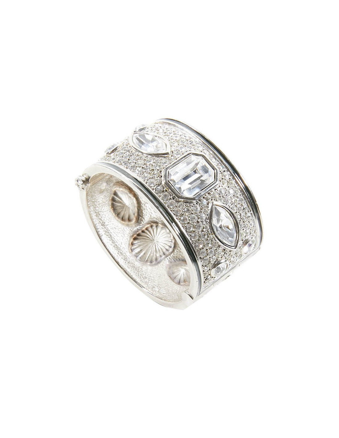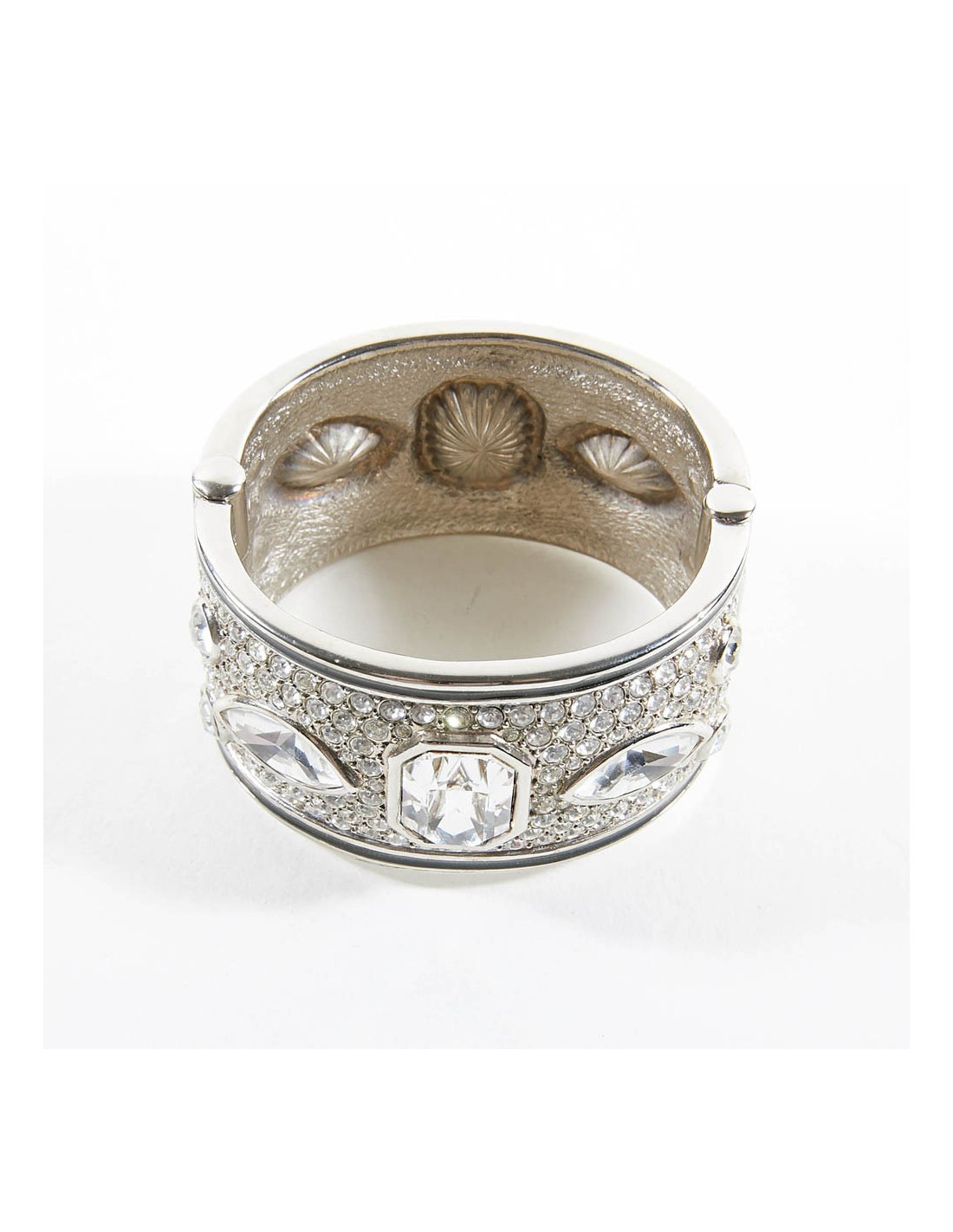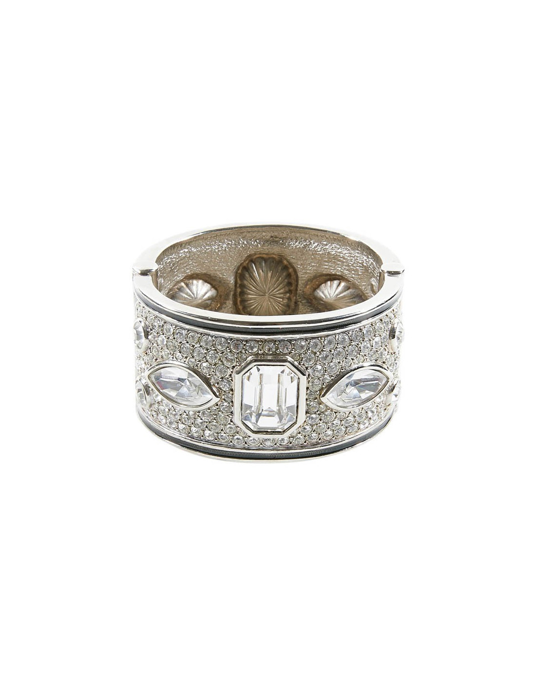On dirait un bracelet de haute joaillerie, tant il est bien réalisé. Cette manchette est sertie de strass et cabochons en cristal. On le date de l'époque de Gianfranco Ferré.