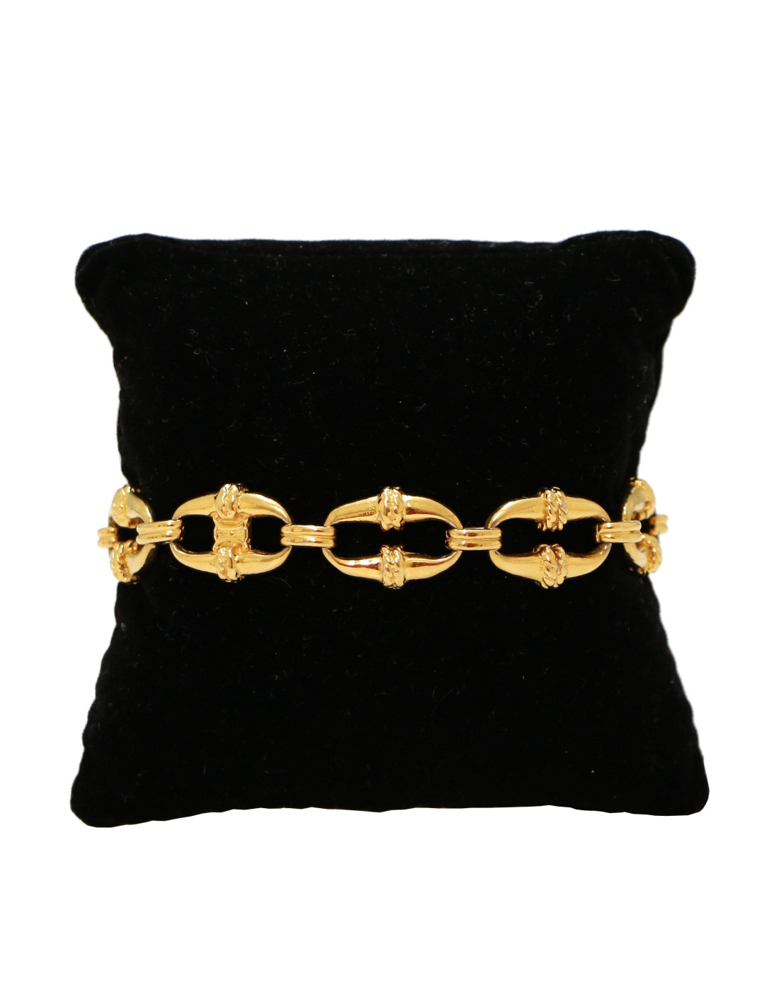 Nouveau Vendu BRACELETS/MANCHETTES Bracelet charms Chanel pierres CHANEL 41991 1 400,00 € Vintage bracelet charms Chanel ambre Condition : très bon étatPays de fabrication : FranceMatière : métal doré à l'or fin, pierresCouleur : doré, orange, ambreDimensions : longueur totale 20 cmStamp : oui Année : 2001Détails : le bracelet est ajustable car le fermoir peut s'accrocher dans différents maillons Alternance de charms des symboles Chanel, le... Voir