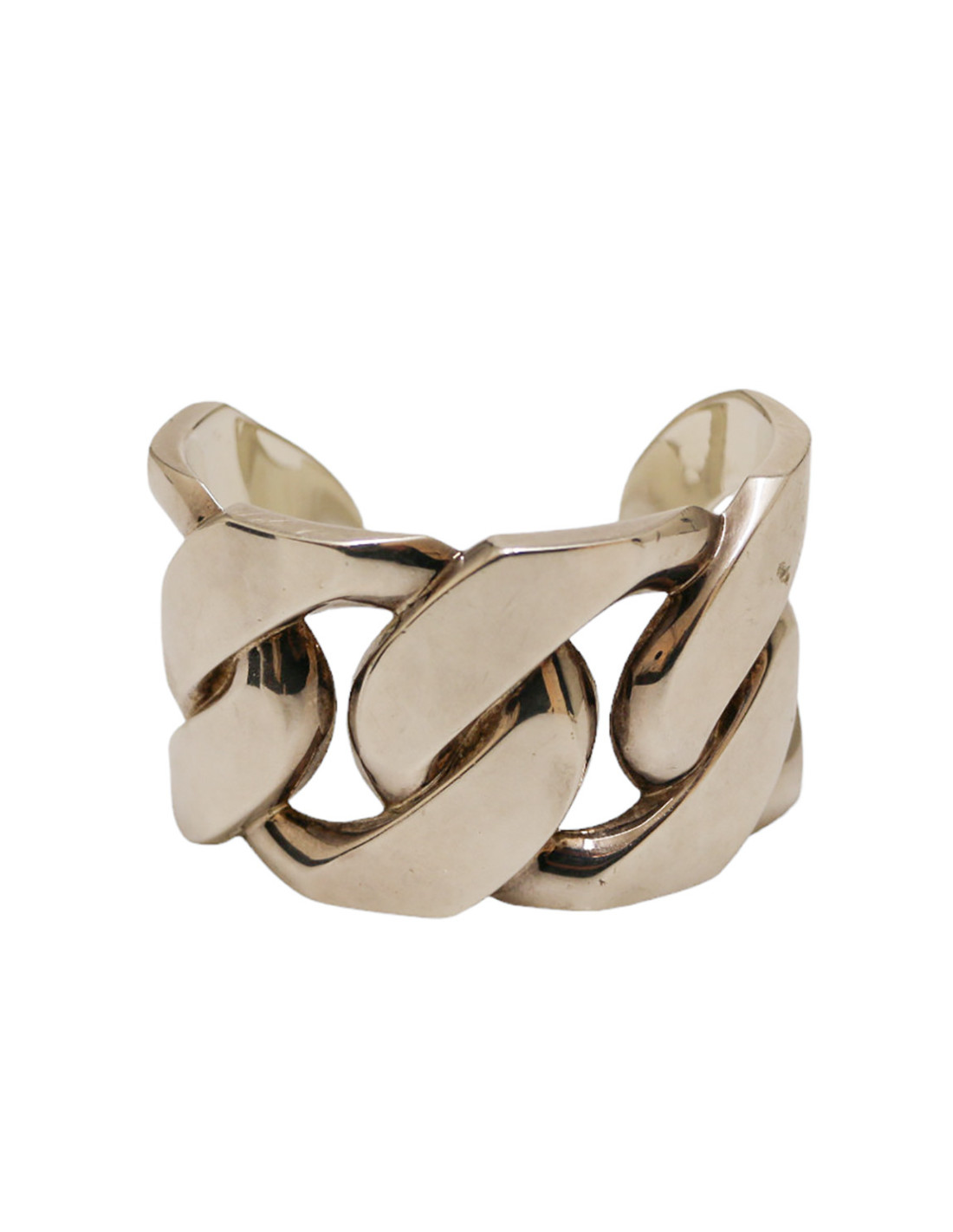 Détails : signature "Hermès Paris" à l'intérieur. Bracelet jonc en argent avec de larges maillons.