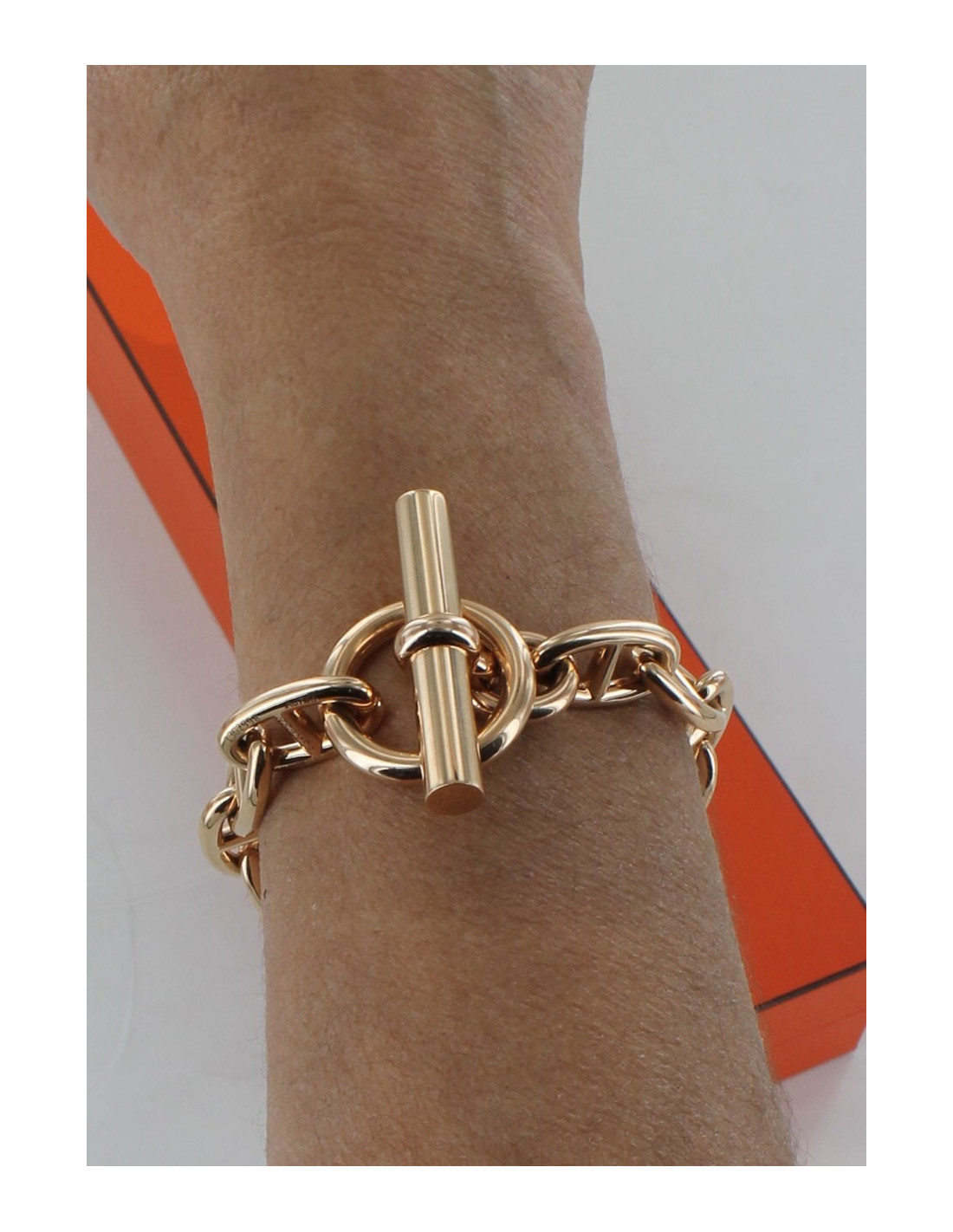 Bracelet chaîne d'ancre Hermès, en or rose 18 carats, 13 maillons - modèle : GM (grand modèle)