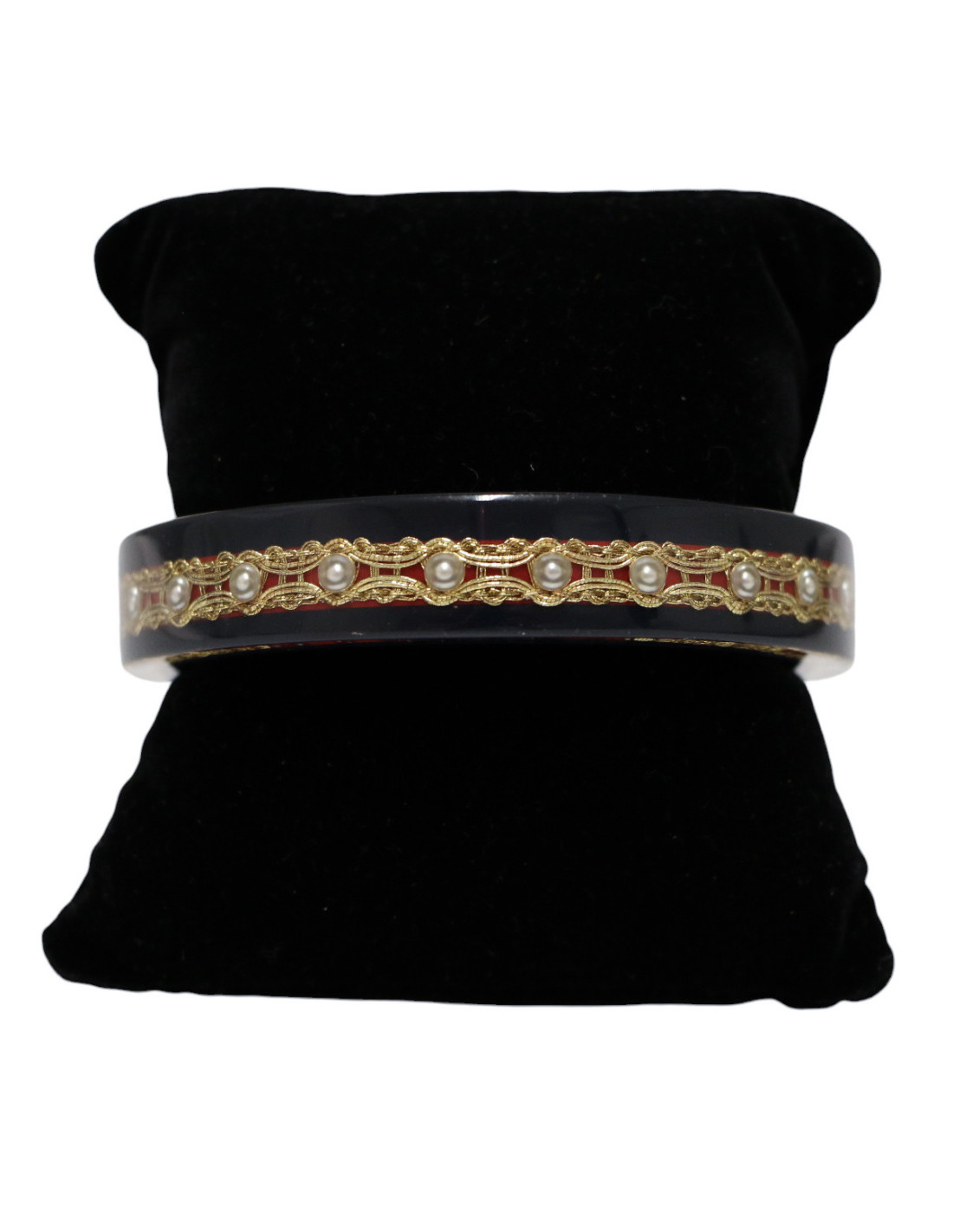 Bracelet CHANEL résine noir incrustée de chaine dorée