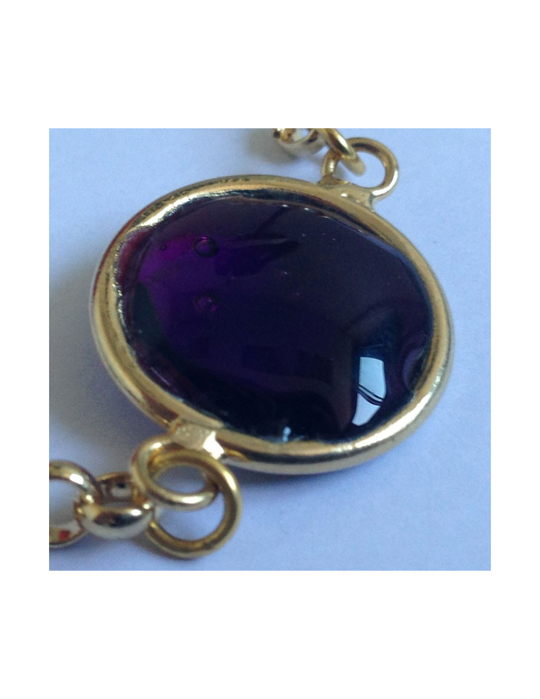 Bracelet Marguerite de Valois terre en pâte de verre améthyste et rubis, métal doré à l'or fin. Etat neuf. Entièrement réalisé à la main en France par les artisans bijoutiers de la maison Marguerite de Valois.