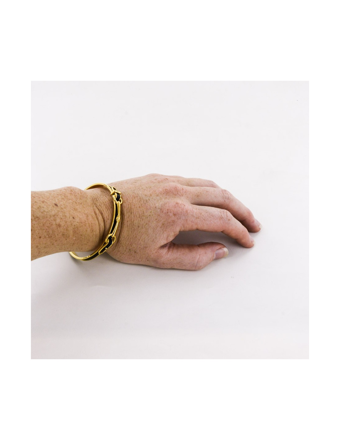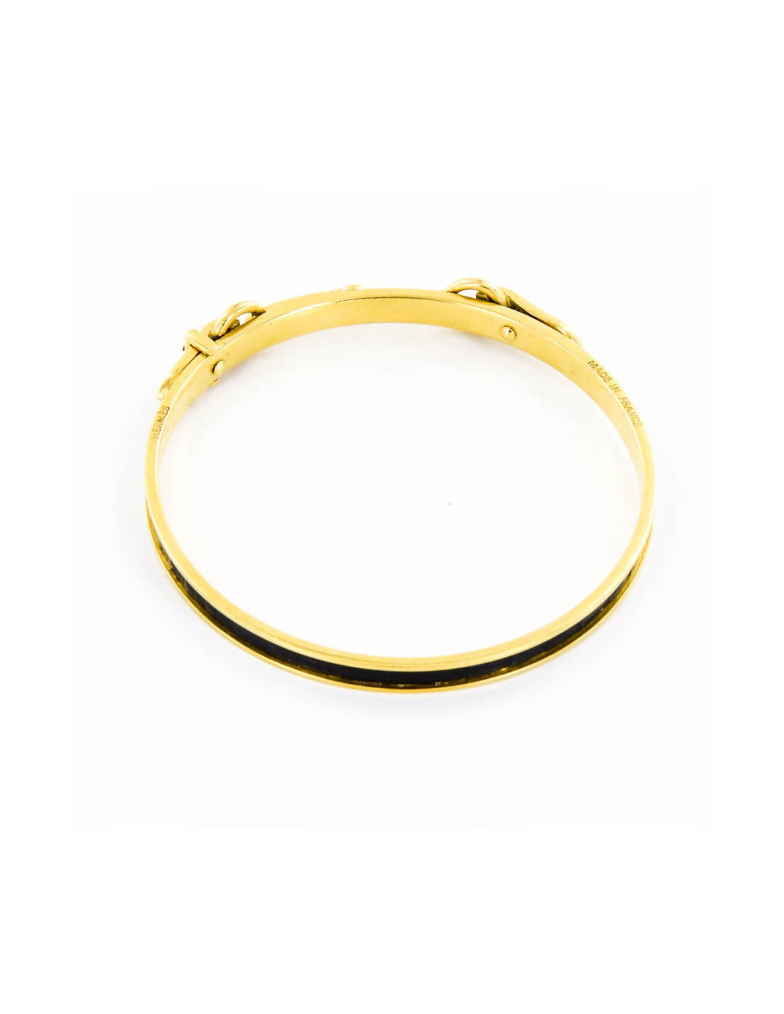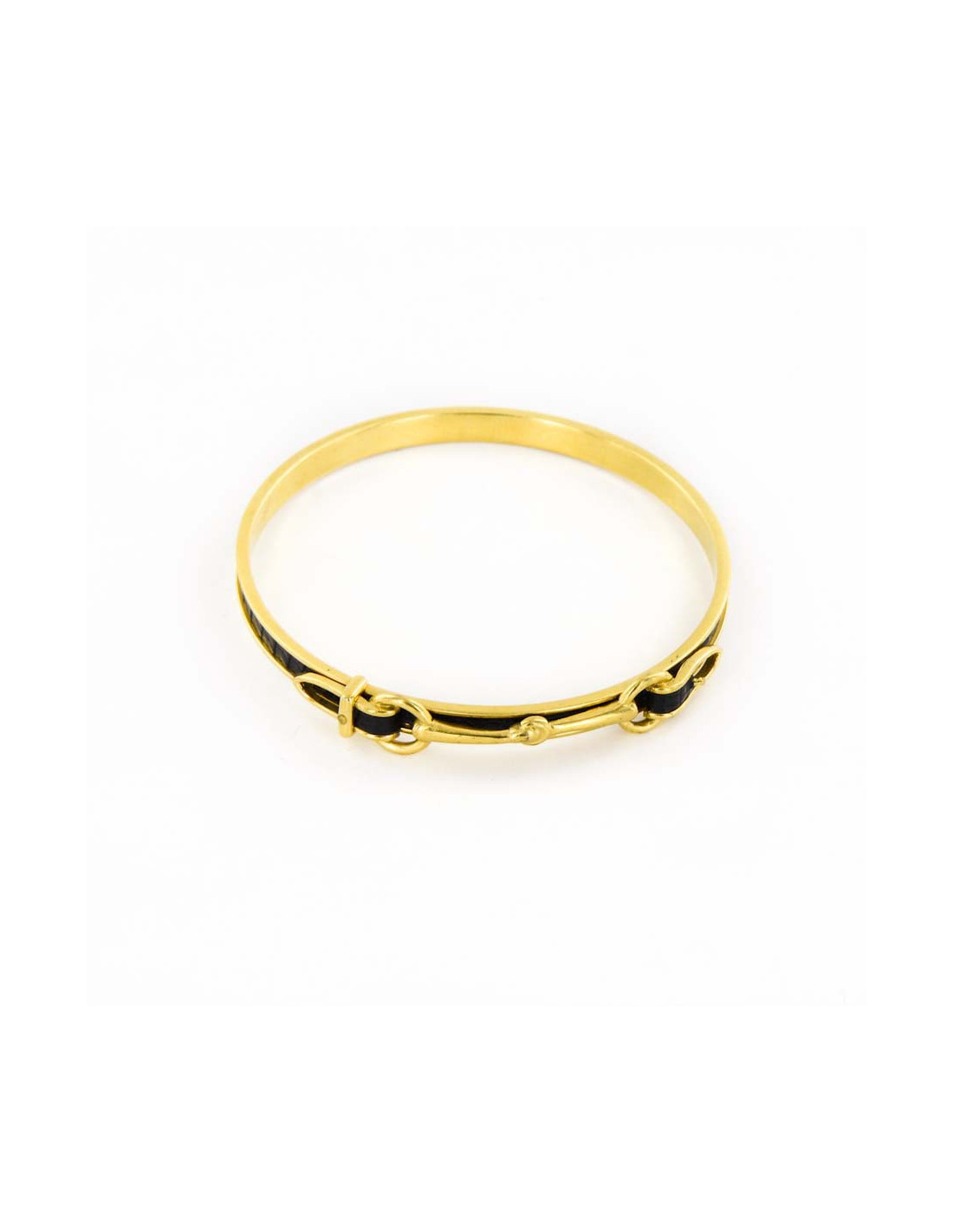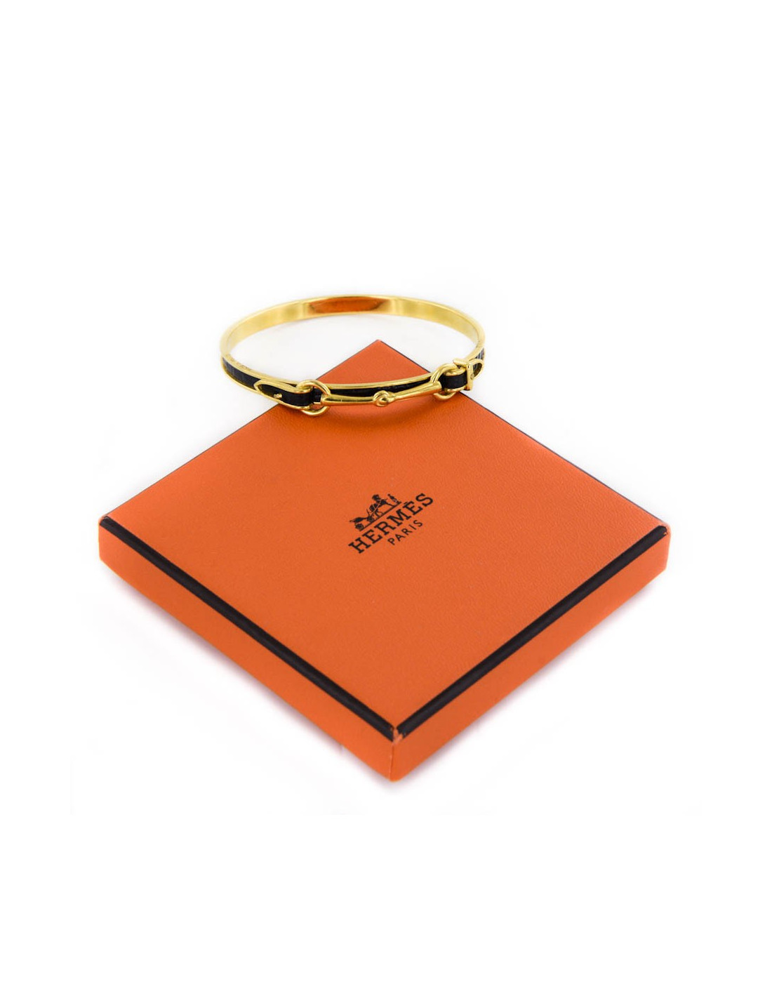 Bracelet HERMES "mors" plaqué or et lézard noir