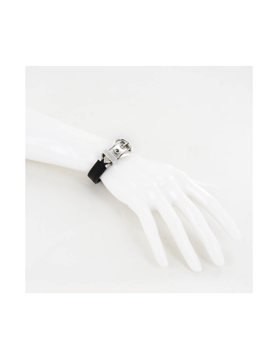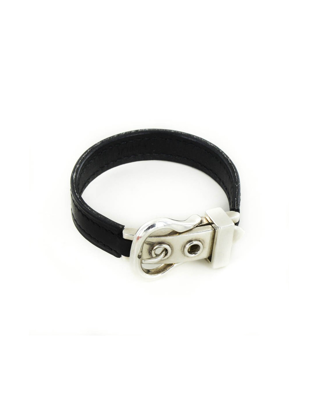 le bracelet est en cuir noir piqûres sellier - et la boucle en argent massif