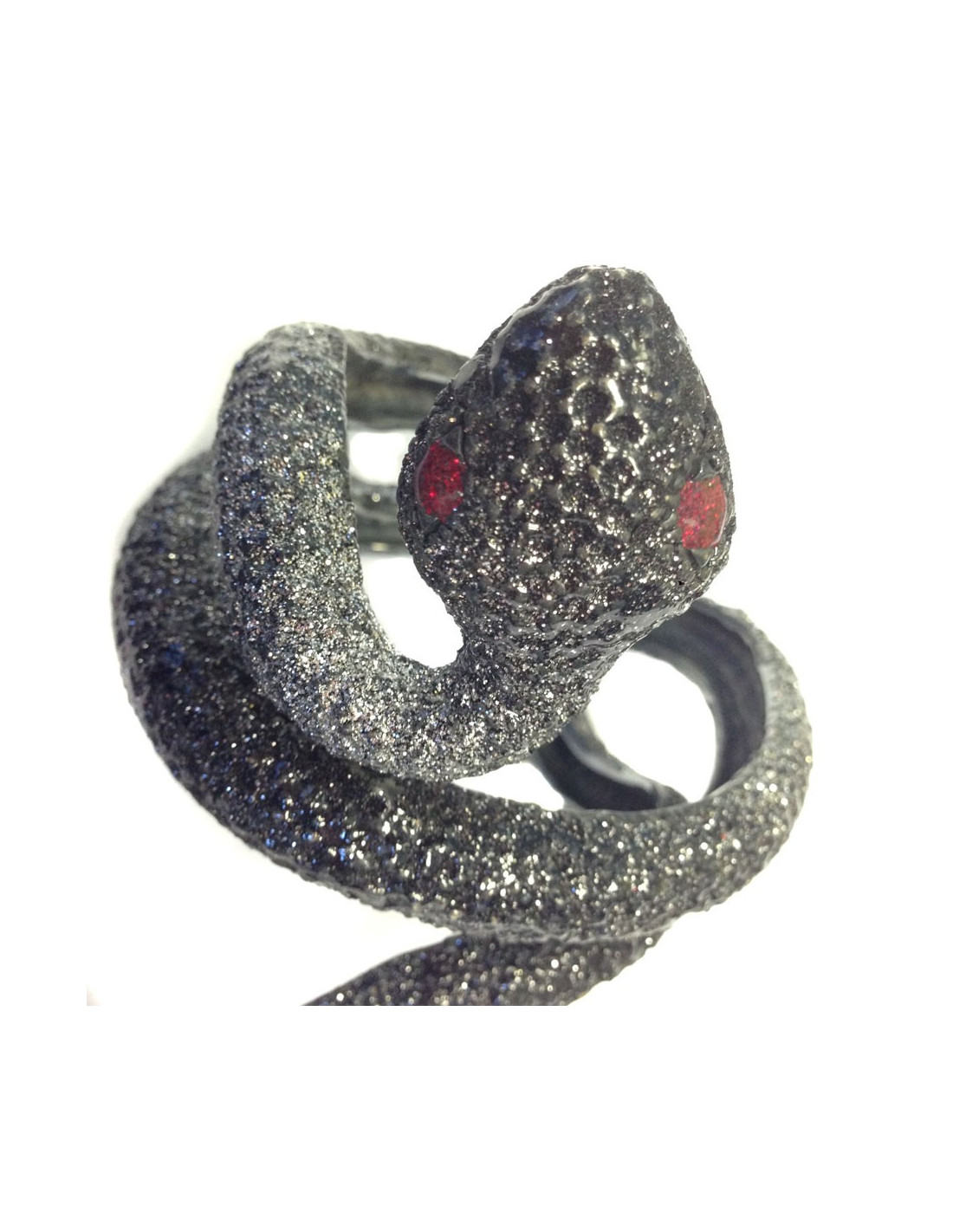 Imposante et magnifique manchette "serpent" de la maison KMO Jewel en ruthenium noir et strass. Se porte sur l'avant-bras.