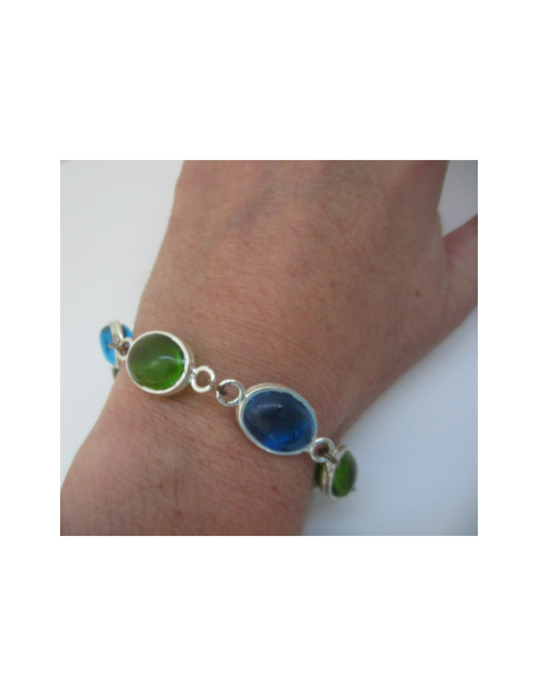 Bracelet Vintage Marguerite de Valois pâte de verre Couture Bleu Océan & Vert Émeraude