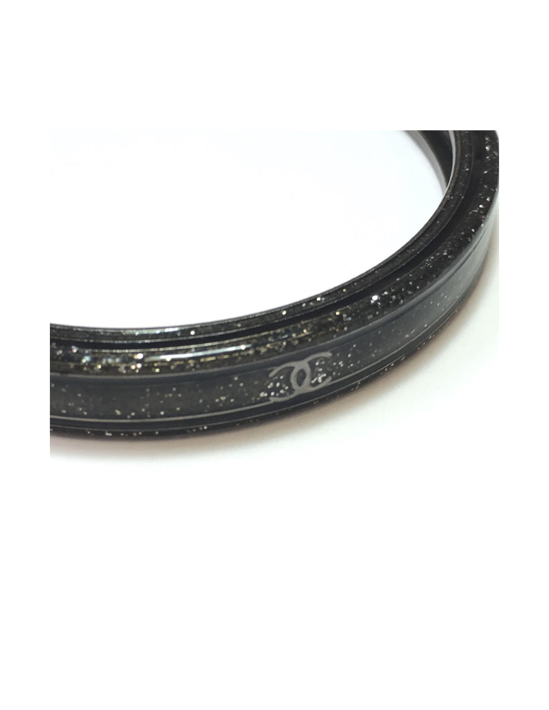 Bracelet CHANEL en métal argenté foncé et résine pailletée. Petits cc incrustés dans la résine. Jamais porté. Pastille de la marque présente.