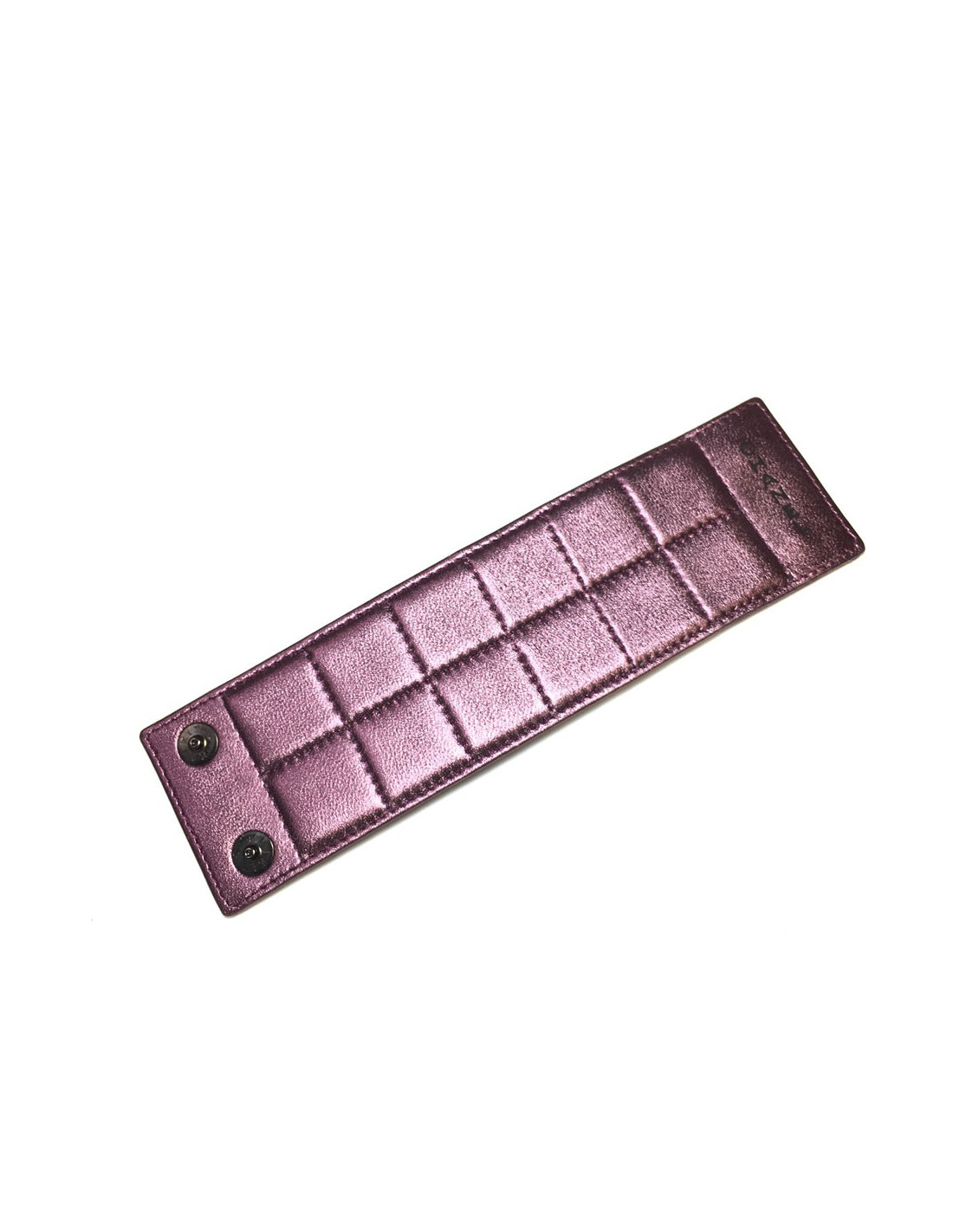 Manchette CHANEL en cuir matelassé métallisé rose électrique. Se ferme par deux boutons pressions. Inscription CHANEL sur le fermoir. Jamais porté.