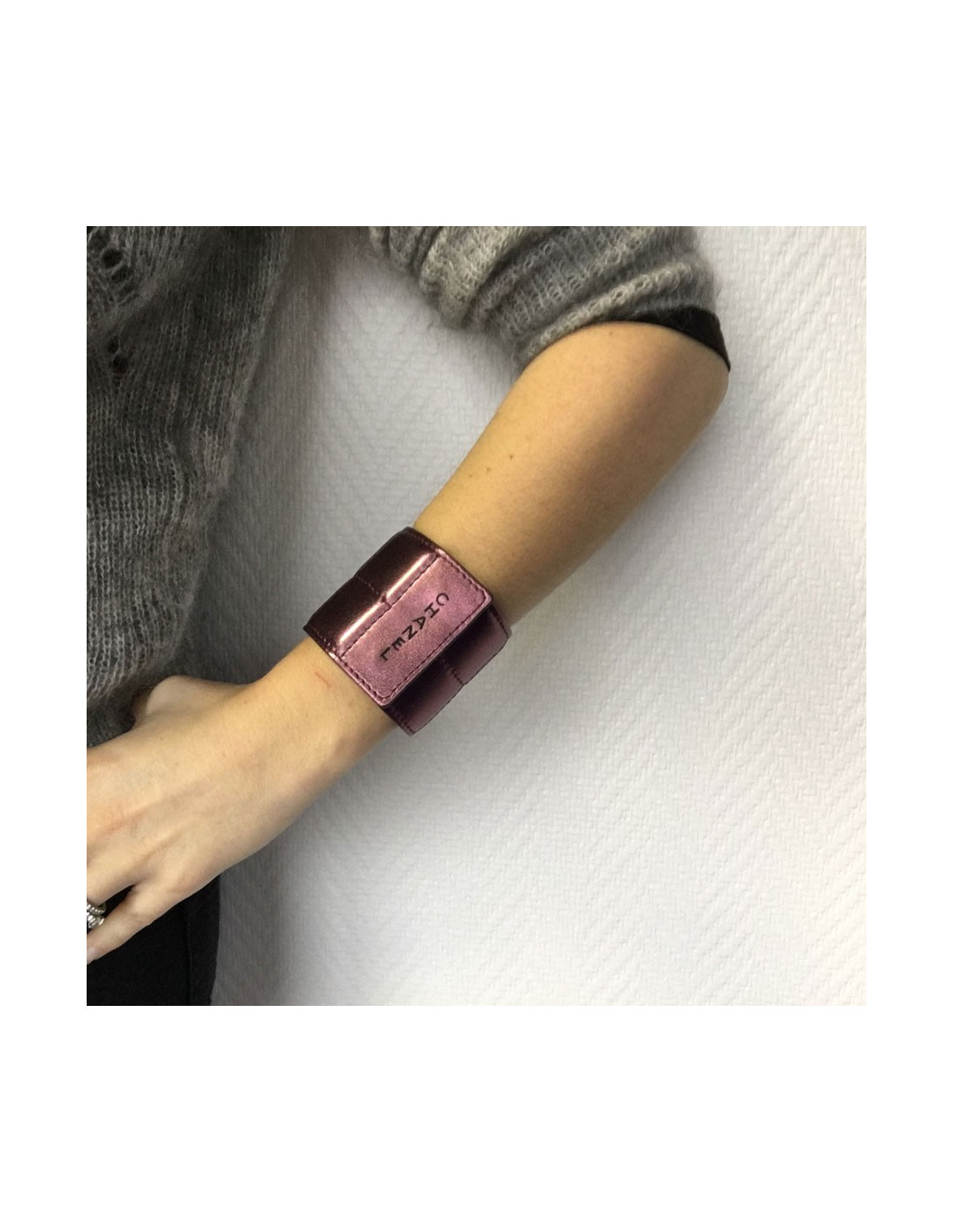 Manchette CHANEL cuir métallisé rose électrique