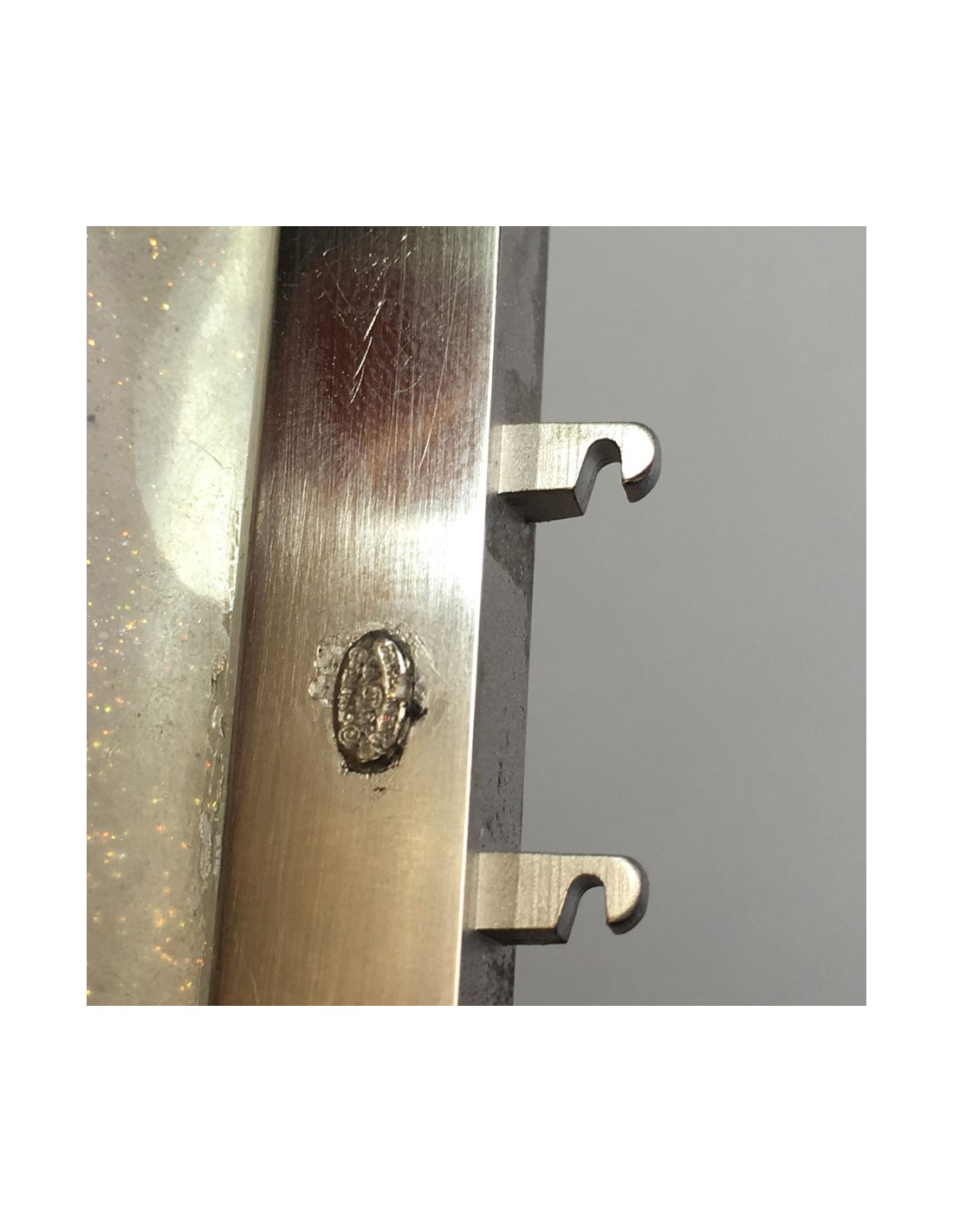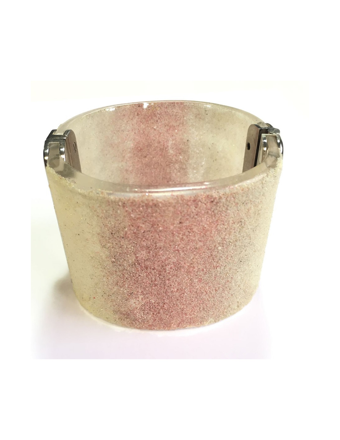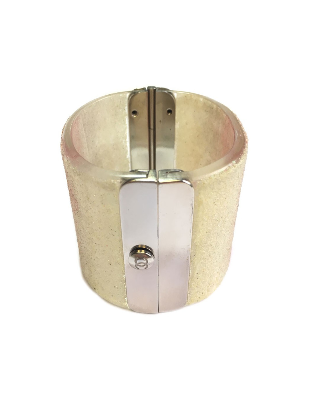 Manchette CHANEL en plexi transparent pailleté blanc et rose