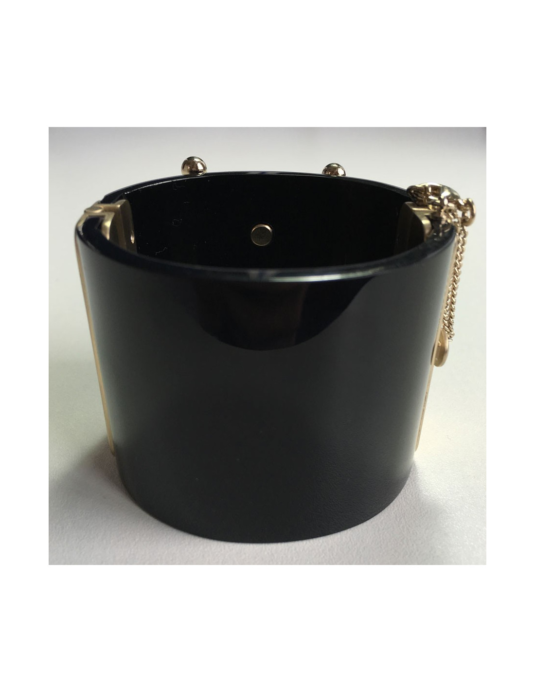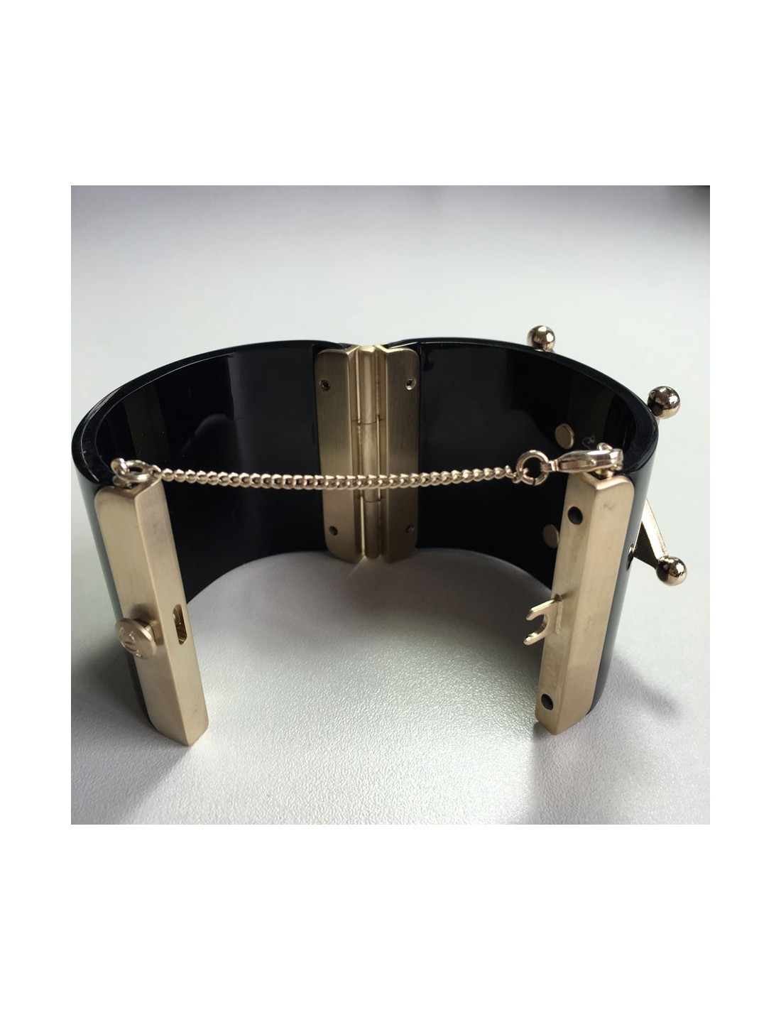 Manchette CHANEL "Paris-Dallas" en résine noire et bijouterie en métal doré