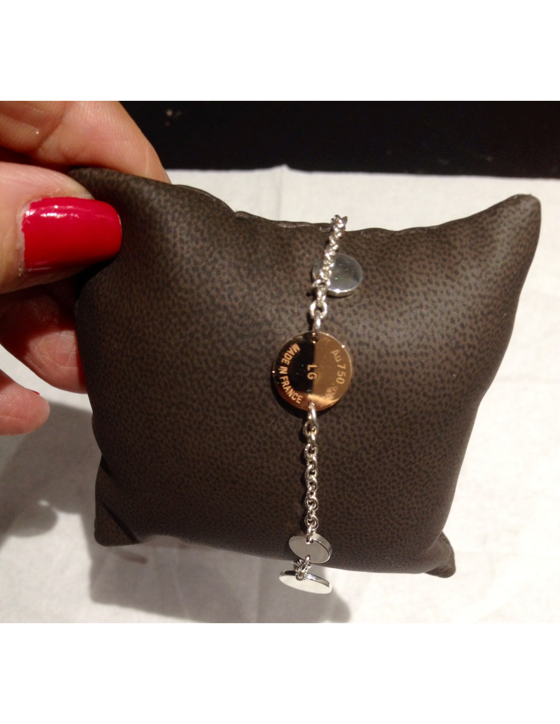 Vendu BRACELETS/MANCHETTES Bracelet MARGUERITE DE VALOIS Cabochons pâte de verre blanche et noire MARGUERITE DE VALOIS 22636 420,00 € Bracelet MARGUERITE DE VALOIS Cabochons Condition :très bon étatPays de fabrication : France Matière : métal, pâte de verreCouleur : doré, noir, blancSigné : M D VDimensions : L 18 cm x H 3,3 cm, chaînette 3,5 cm Voir