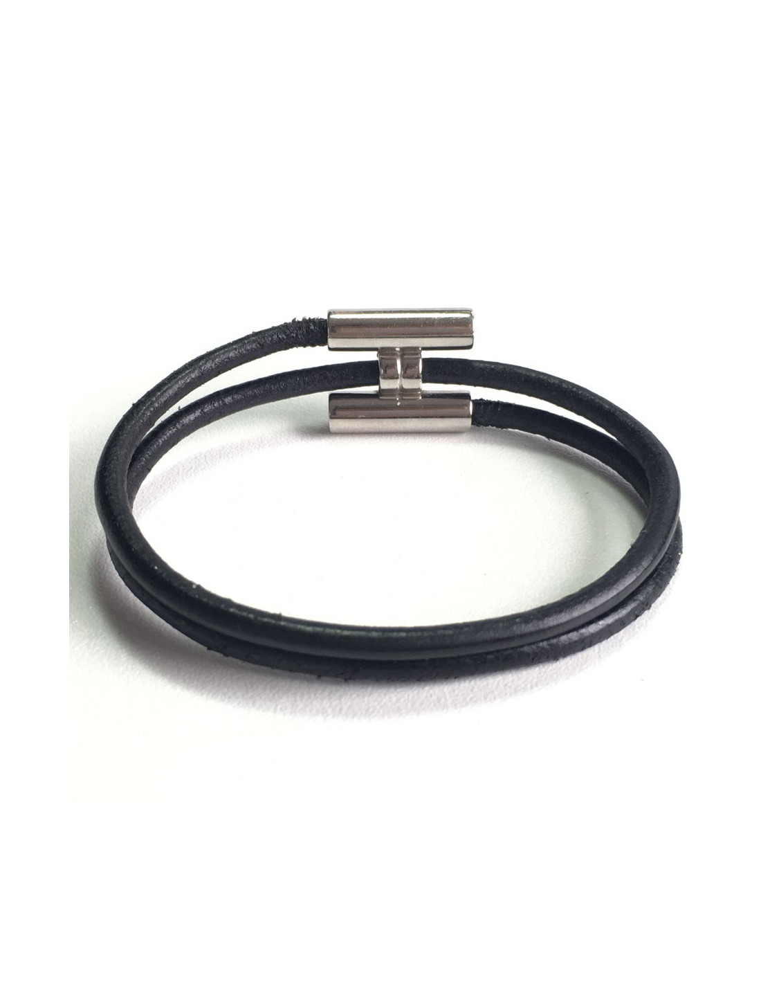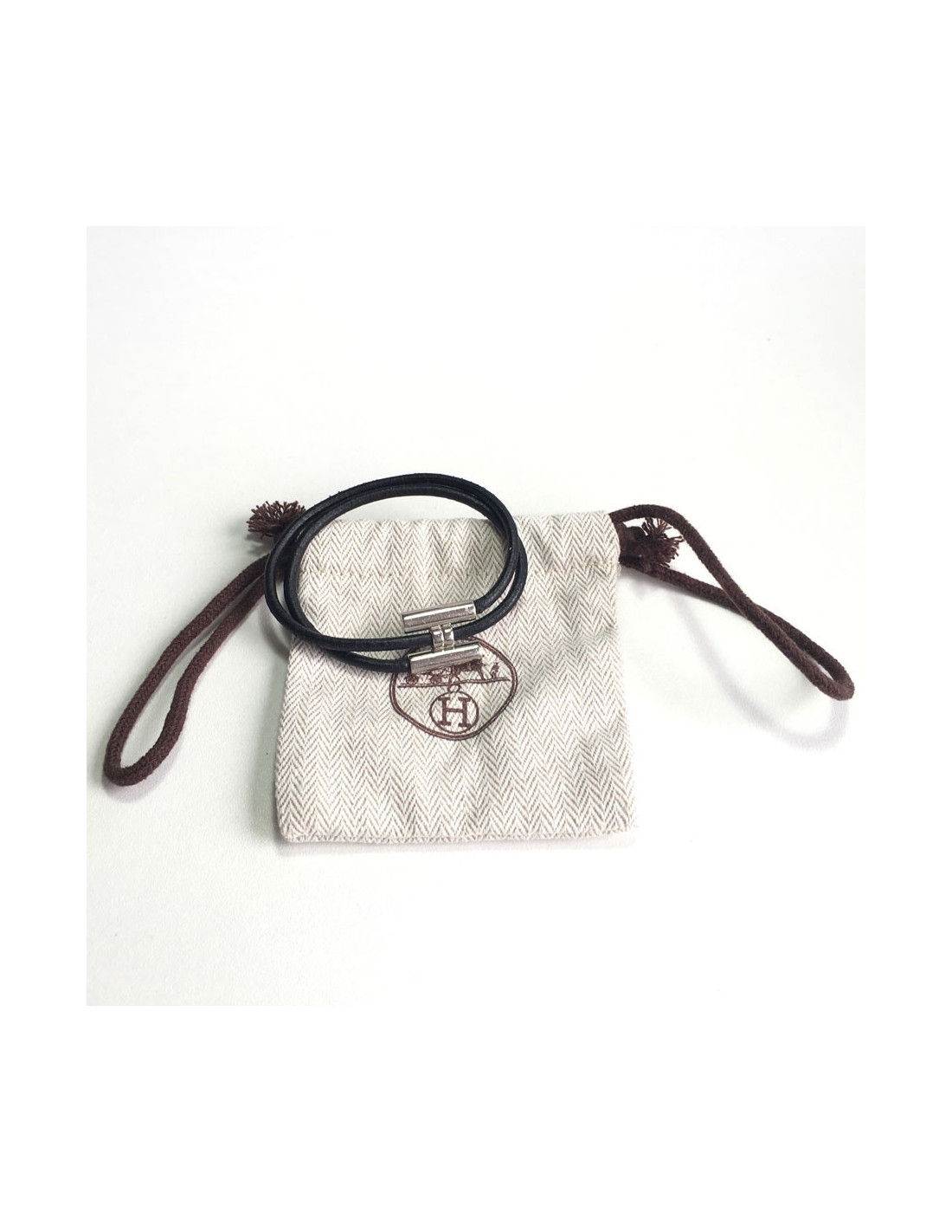 Bracelet Tournis HERMES lien en cuir noir et argent palladié