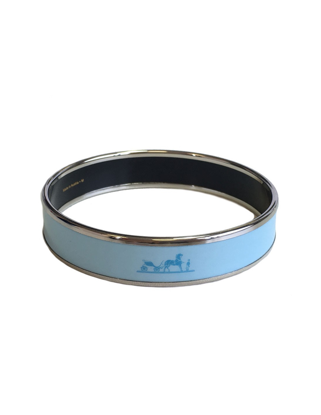 Bracelet HERMES medium en émail Aigue-Marine et métal palladié. Motif: Calèches.