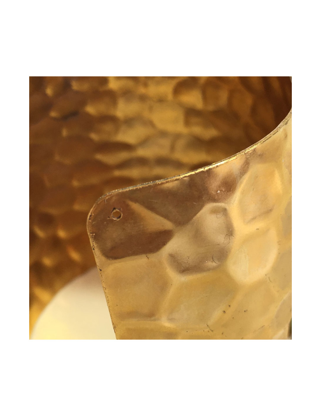 Un petit trou sur une extrémité du bracelet, un infime éclat sur un pétale en pâte de verre (photo), une trace foncée sur une partie du métal (voir photo).