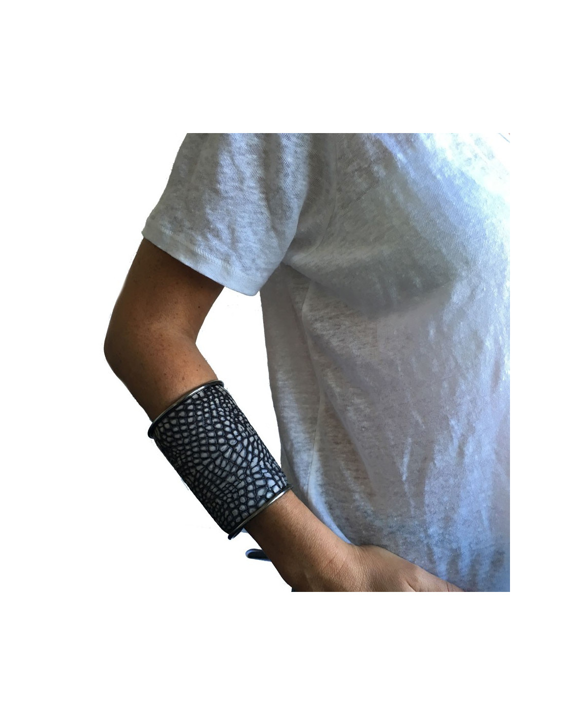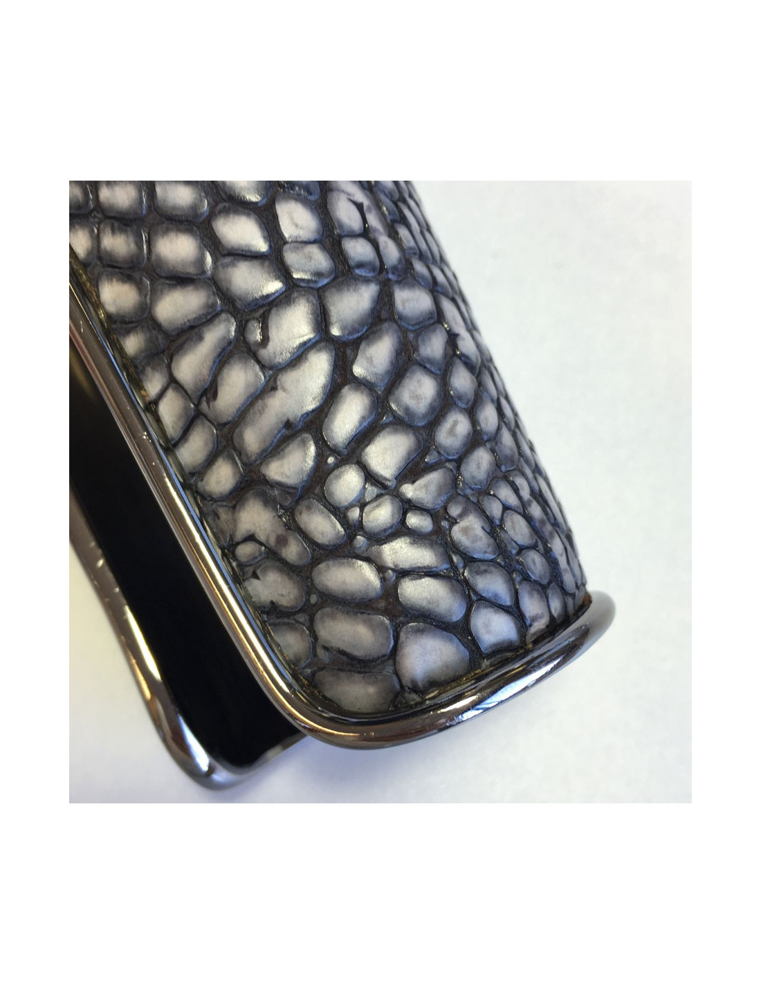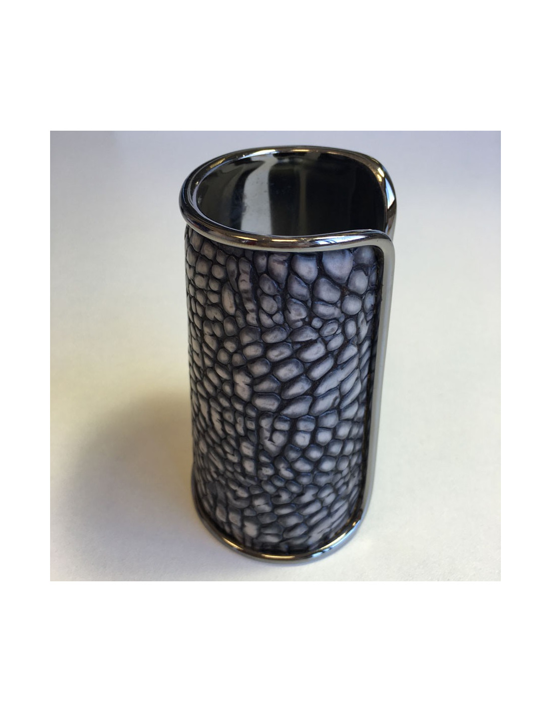 Manchette ANDREW GN en métal argenté, dessus imitation peau dans les tons gris.