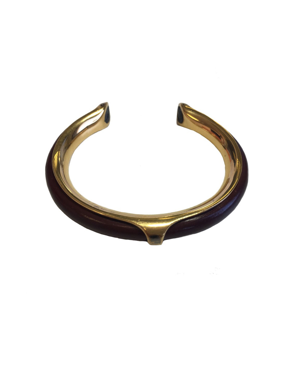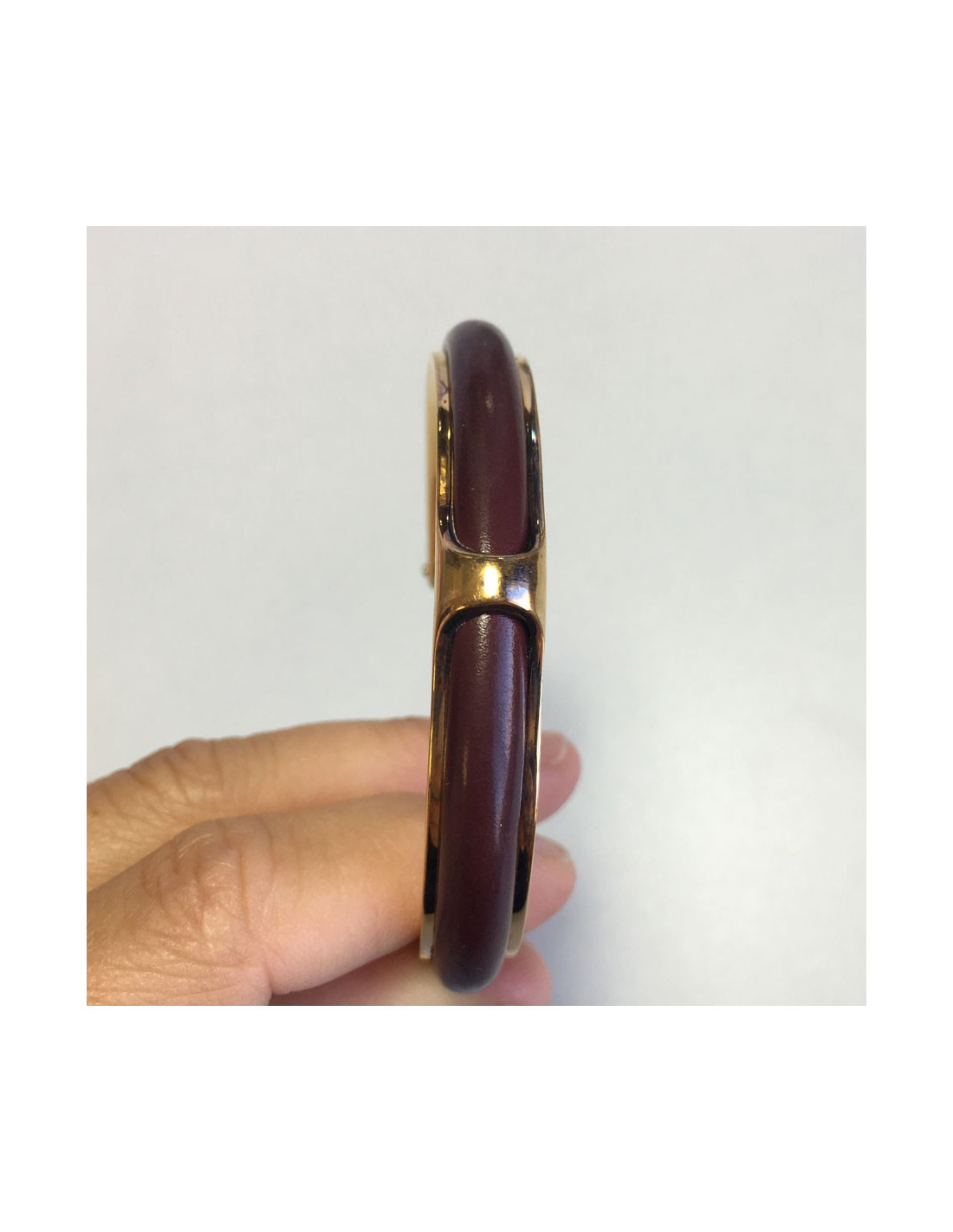 vintage! très élégant bracelet jonc HERMES en cuir rouge H et plaqué or. À porter tous les jours.