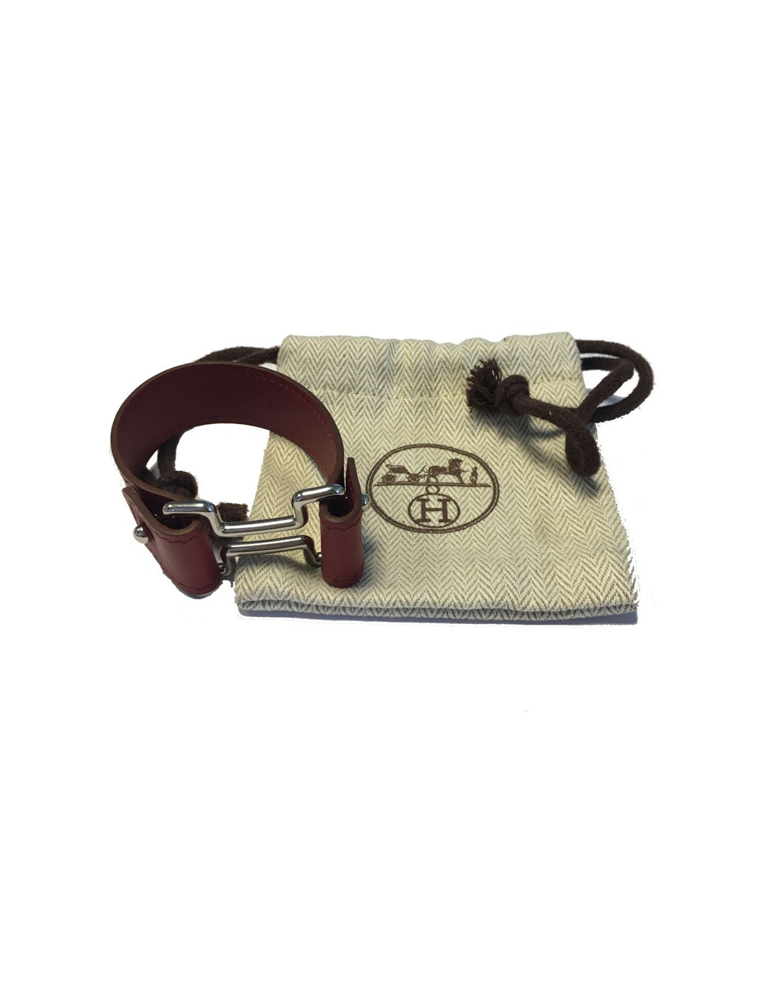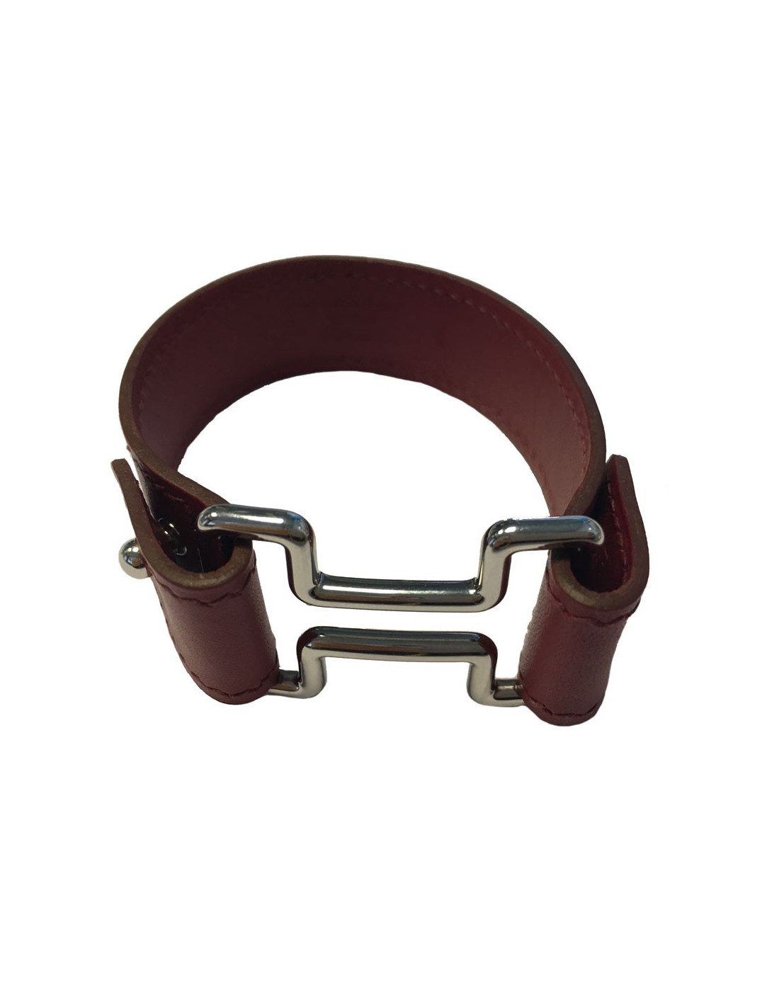 Bracelet Hermès, en cuir rouge H (bordeaux) et bijouterie argent palladié. Etat neuf