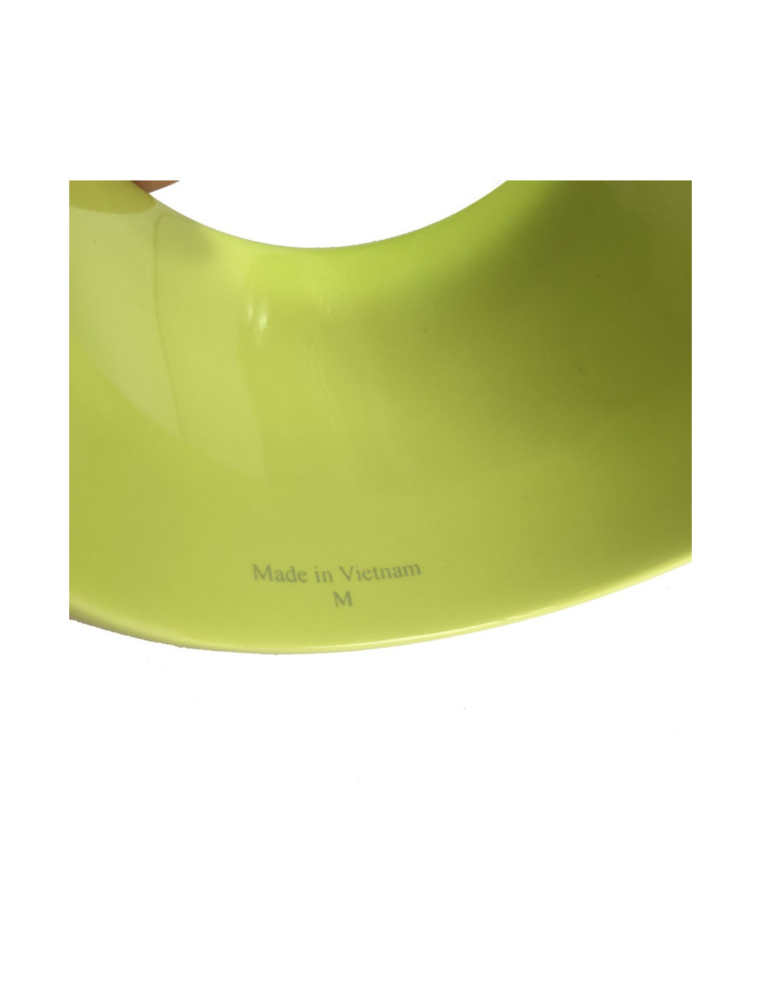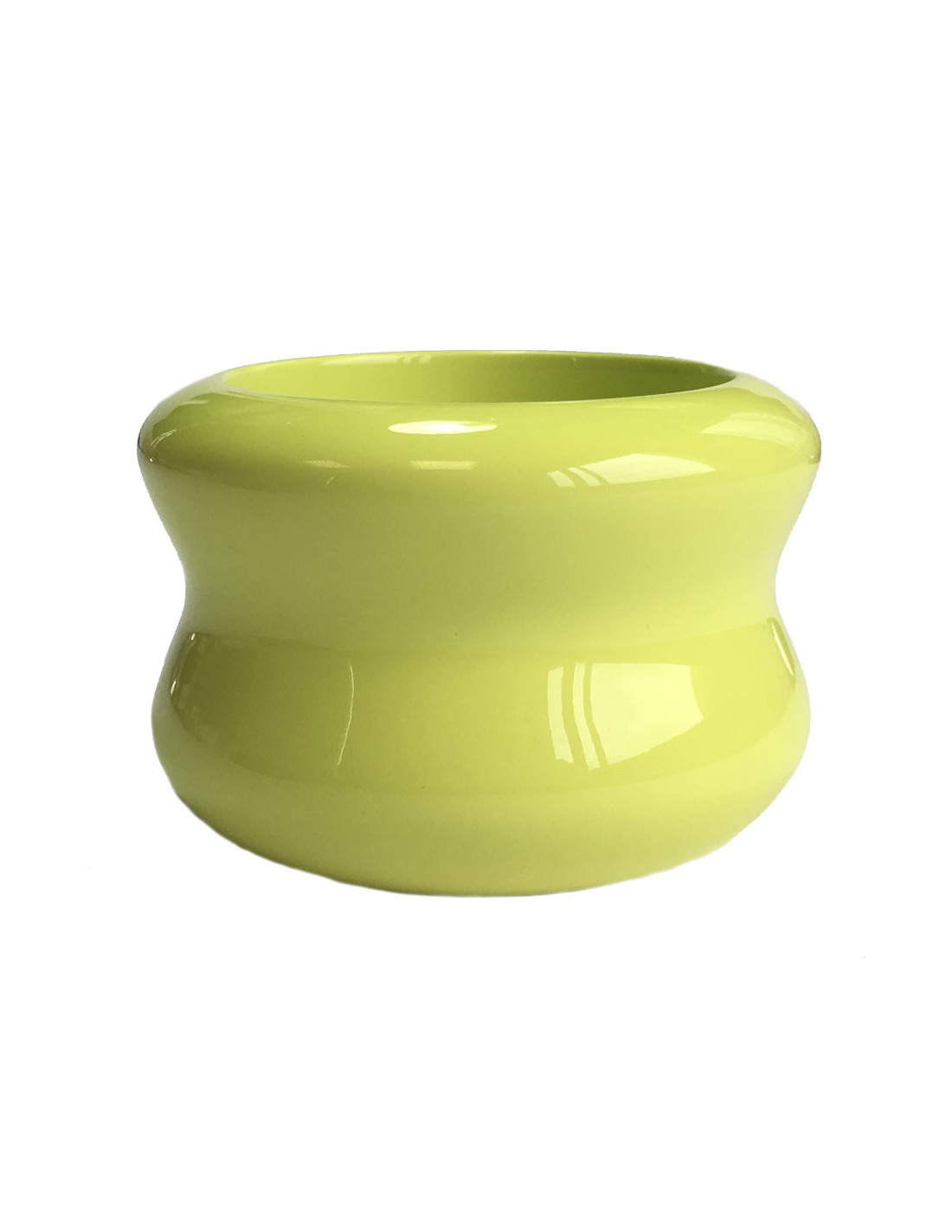 Imposant bracelet Hermès en bois laqué brillant vert anis, taille M. Signé Hermès, made in Vietnam.