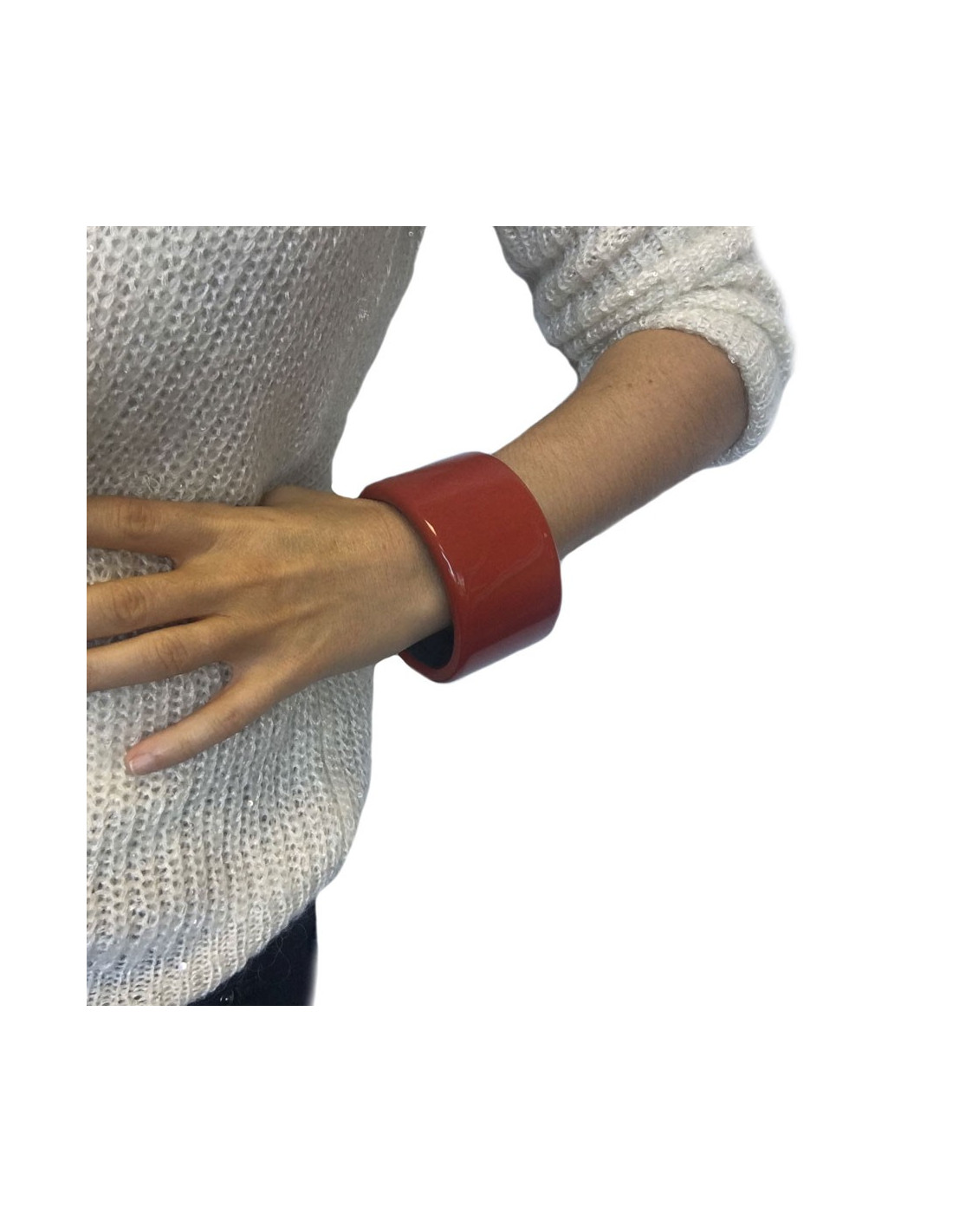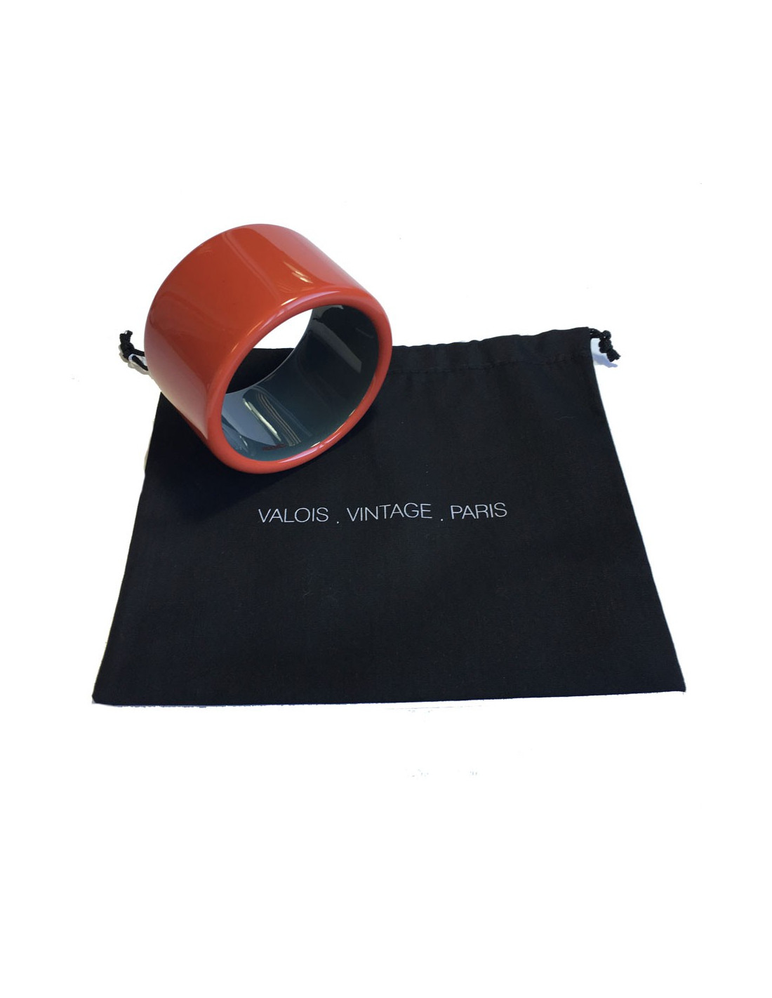 Bracelet HERMES en bois laqué orange foncé. Intérieur laqué en gris. En parfait état. Inscription: Made in Vietnam