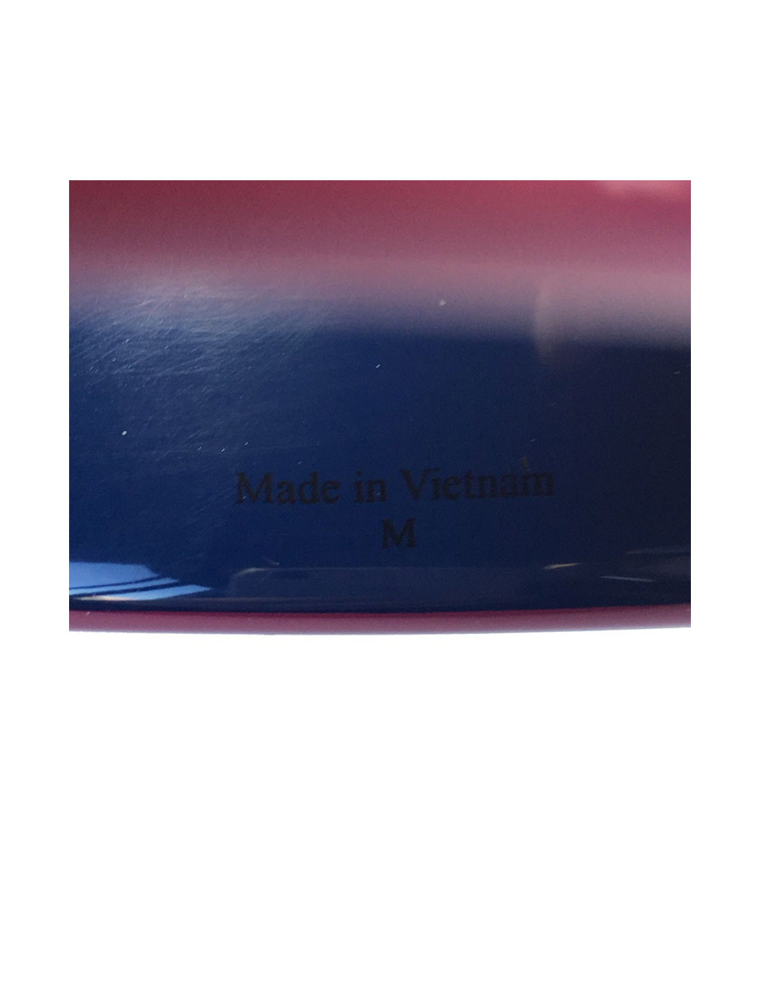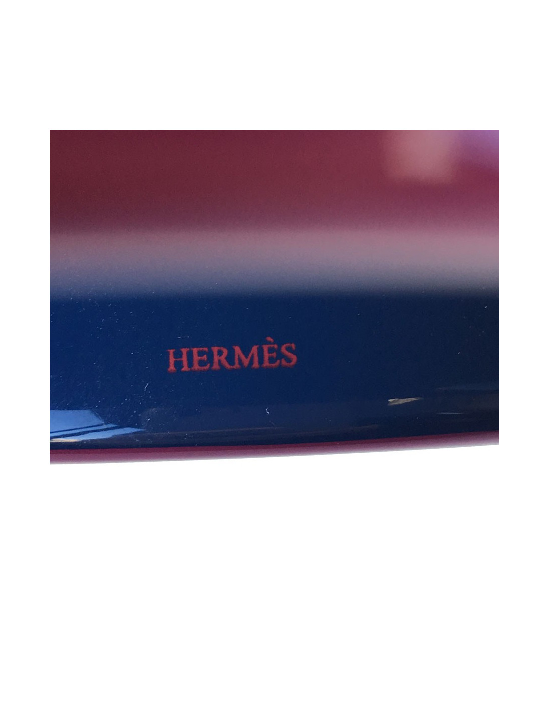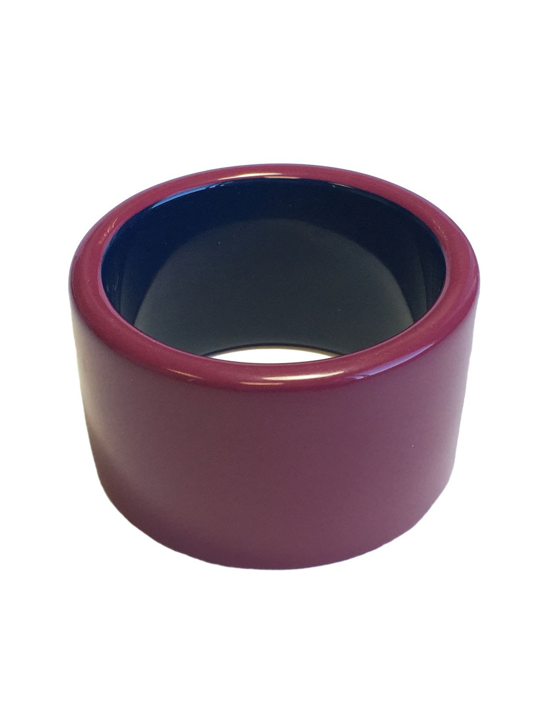 Bracelet HERMES en bois laqué fuschia, intérieur bleu marine. En très bon état.