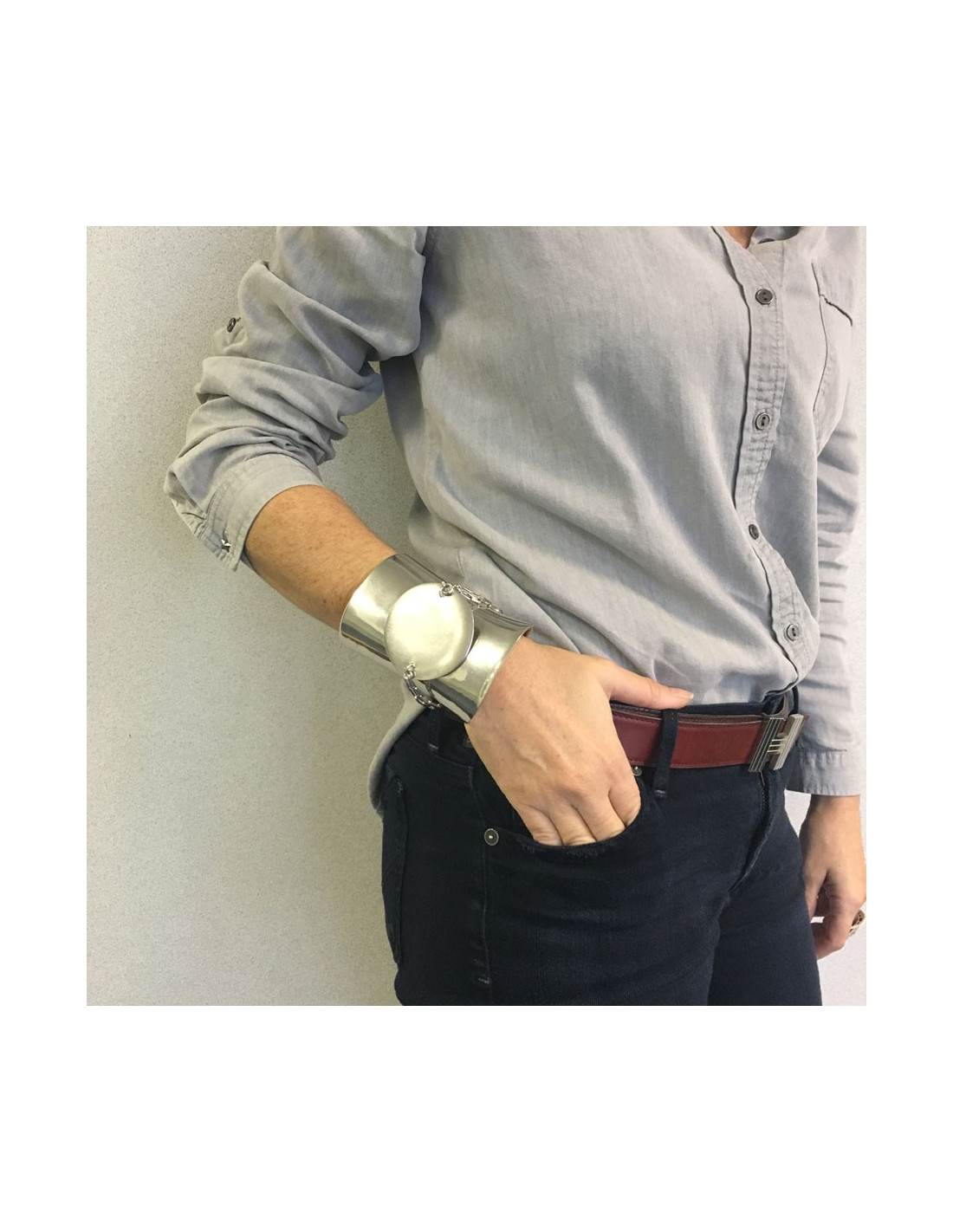 Dimensions: tour de poignet: 18 cm - largeur: 10,5 cm - diamètre intérieur: 6,5 cm