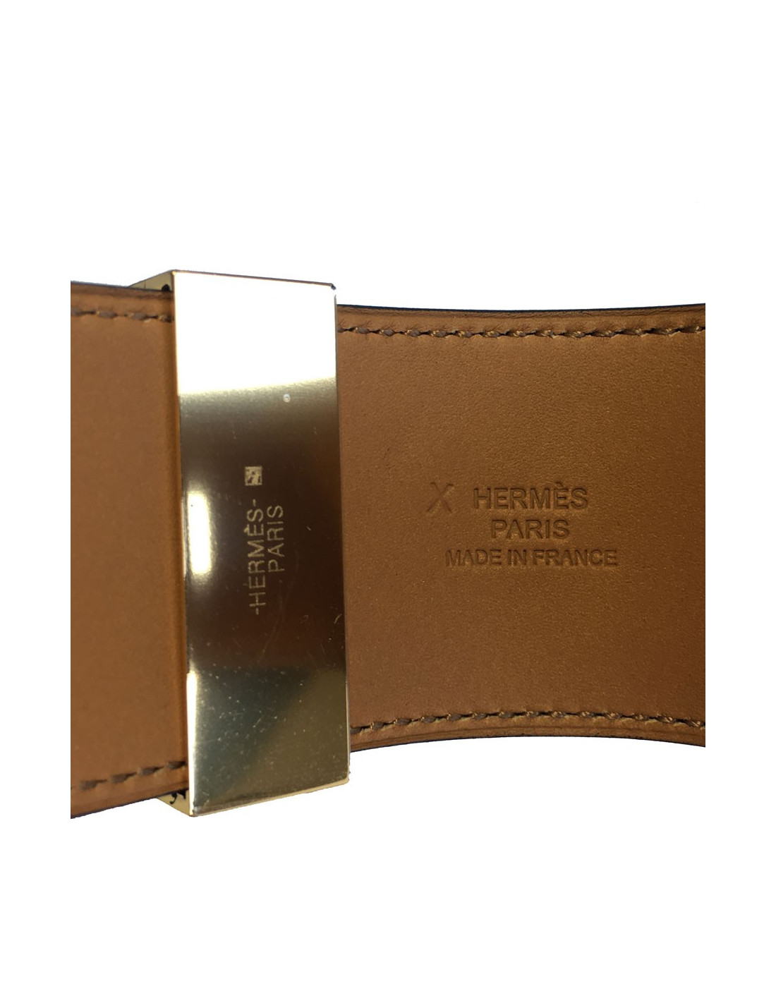 Superbe manchette HERMES Collier de Chien, taille S, en cuir box noir et bijouterie laiton plaquée or.
