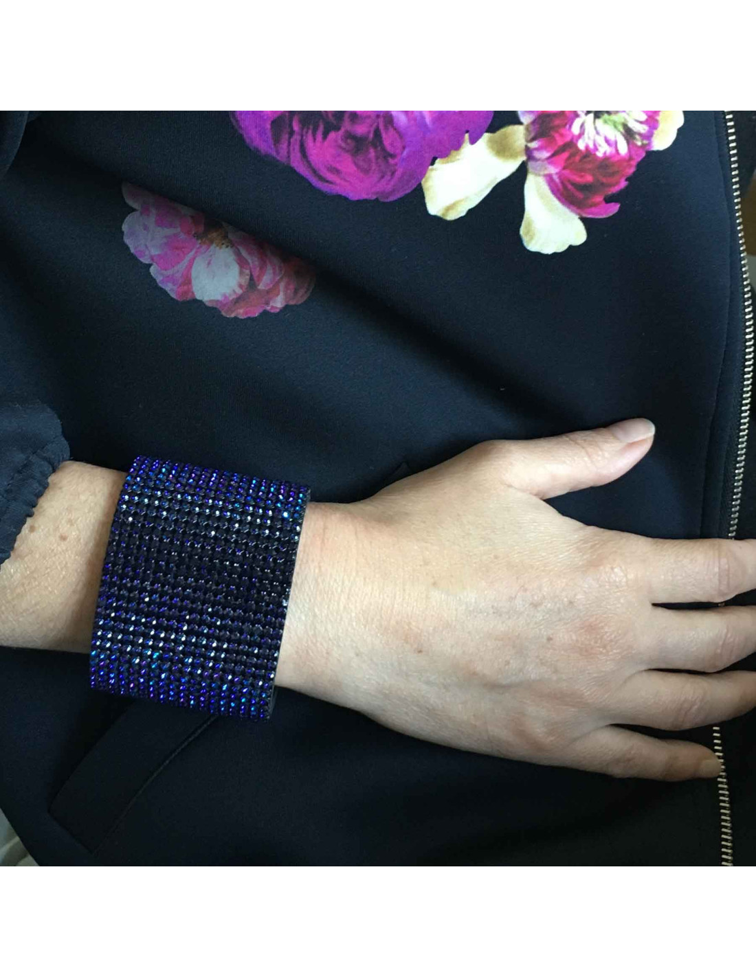 Manchette DANIEL SWAROVSKI sur crystal mesh violet foncé