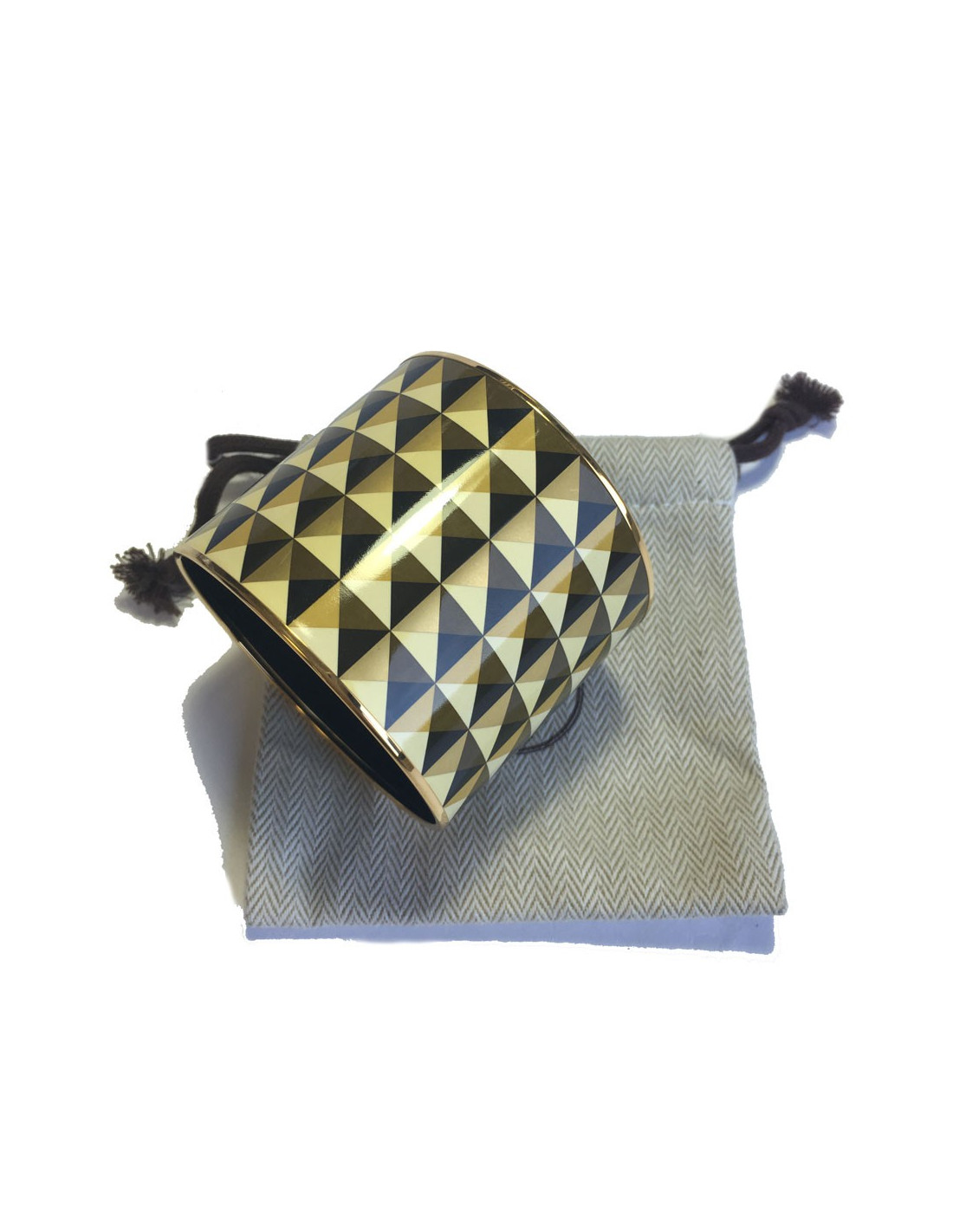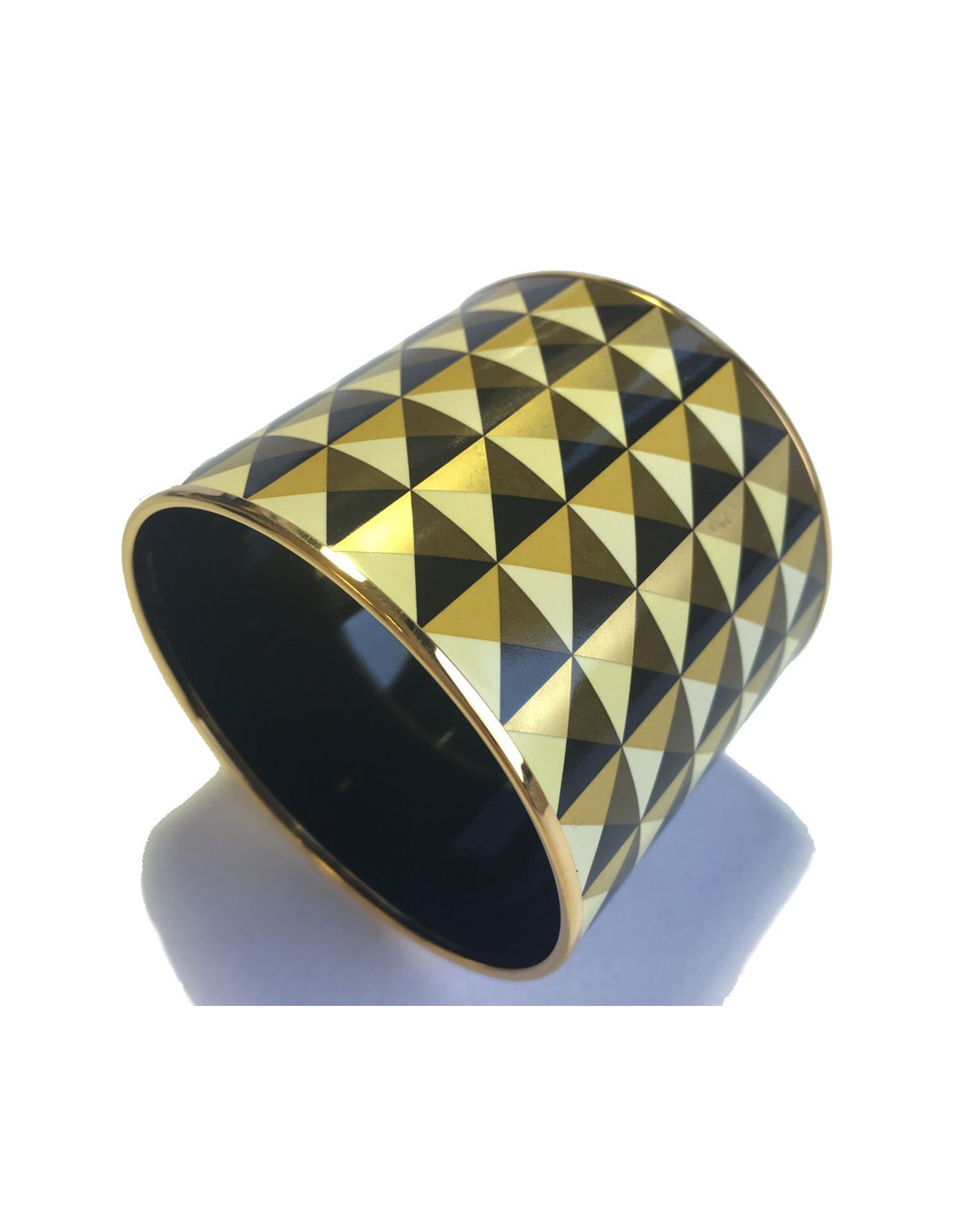 Manchette Hermès méga large en émail or, noir, kaki et finition plaqué or.