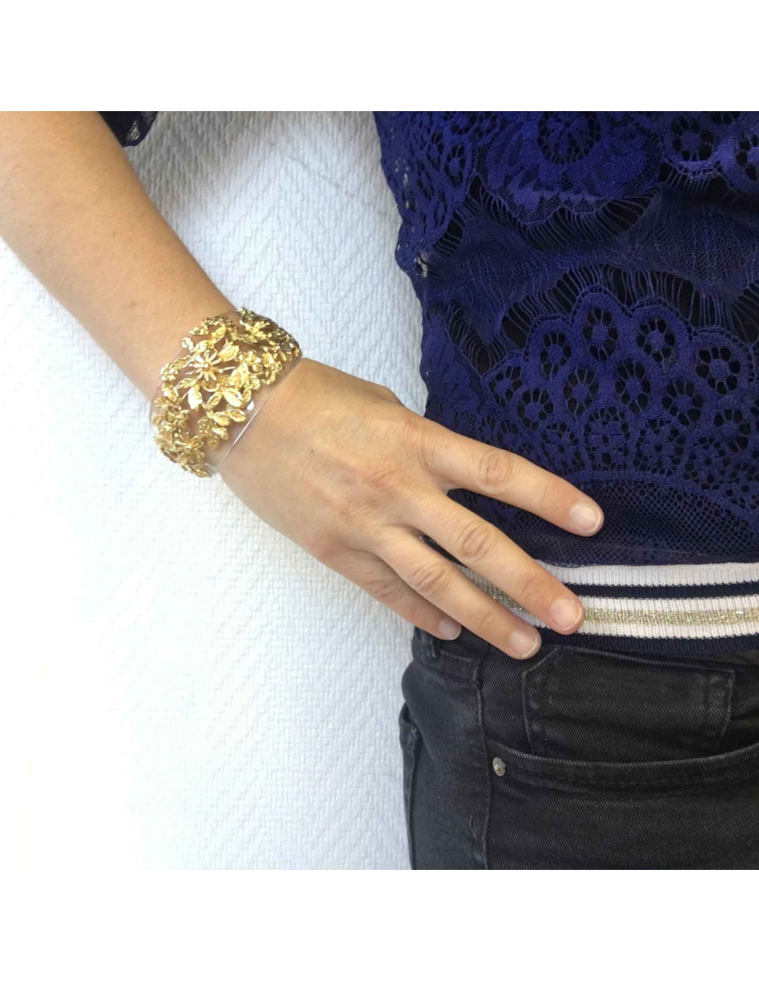 Manchette GOOSSENS en plexiglass et feuilles et fleurs en métal doré