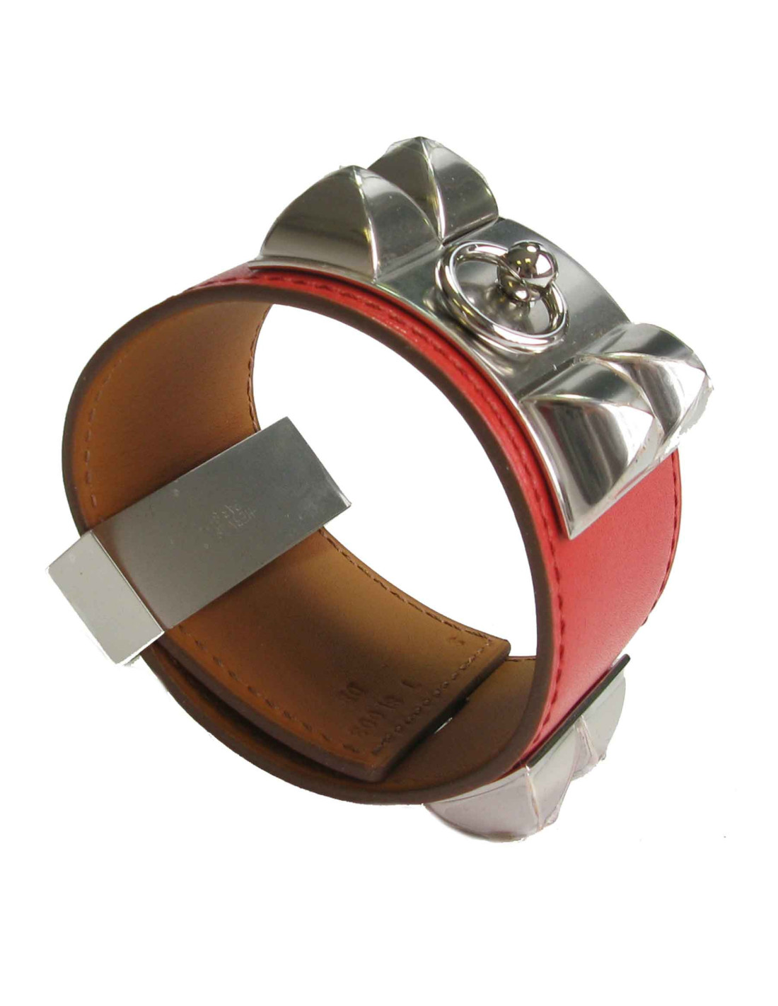 Manchette Médor Collier de Chien Hermès en cuir de veau tadelakt couleur sanguine, accastillage en métal argent palladié.