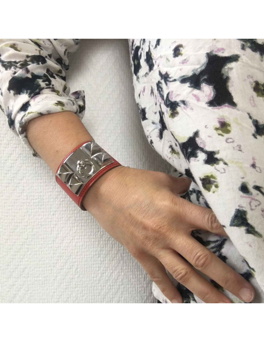 Manchette Médor CDC HERMES cuir de veau tadelakt sanguine